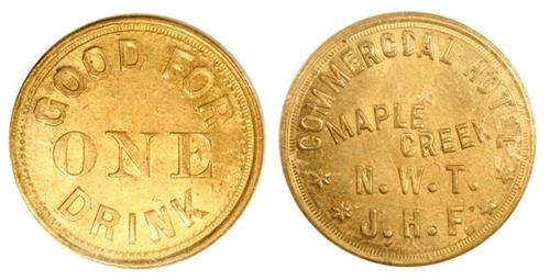 Brass, Commercial Hotel, Maple Creek, N.W.T. Good For One Drink.