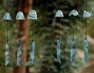 NAMBU BELL WIND CHIMES - SET OF 6 - 14"H 2"W 2"D - BRASS WIND CHIMES - GARDEN BELLS