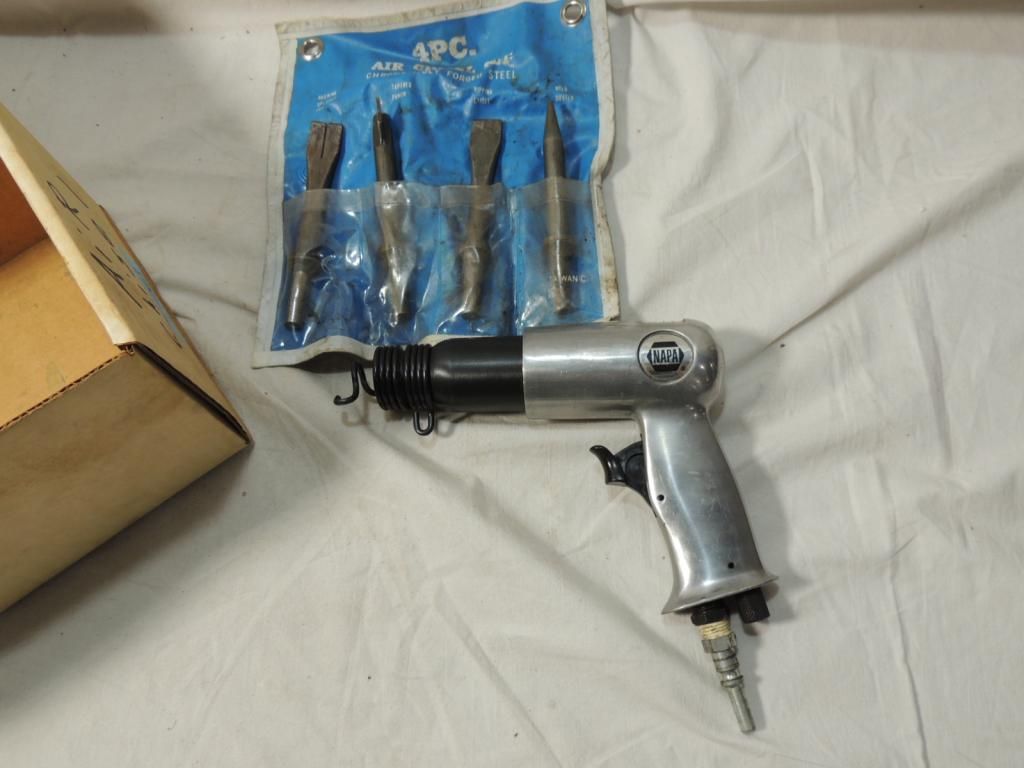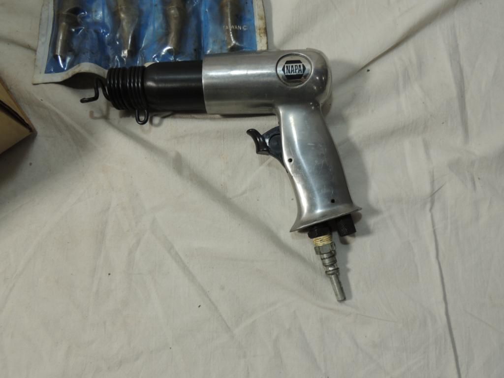 NAPA AIR CHISEL WITH ADDITIONAL BITS INCLUDED. AS SHOWN. SEE PHOTO FOR MORE DETAILS.