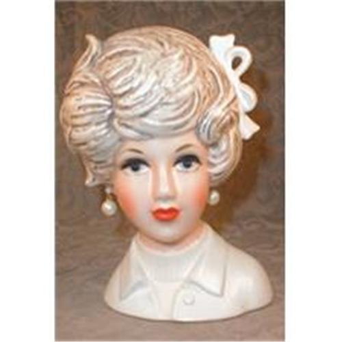 We've seen this young lady head vase in green and in blue, but rarely in white and never with frosted hair! Original earrings.
