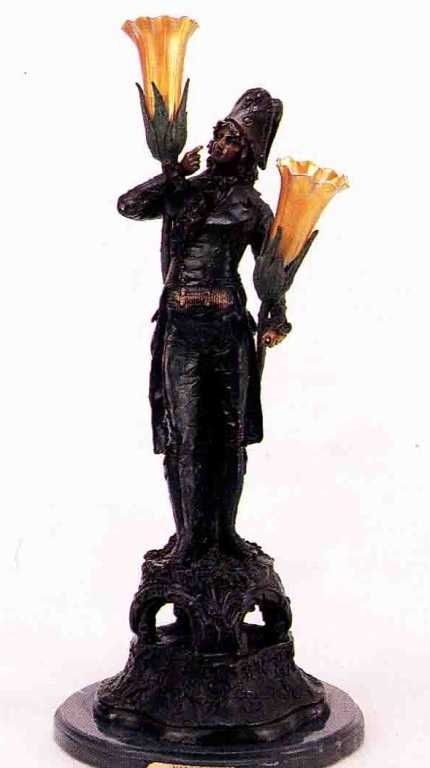 "NAPOLEON" BRONZE SCULPTURE LAMP - AFTER MORISE - MUSEUM QUALITY VERDI FINISH - MOUNTED ON A FINE ITALIAN MARBLE BASE - BEAUTIFULLY DETAILED - SIGNED - MINT CONDITION - 29"H X 11"W - LOST WAX CAST BRONZE