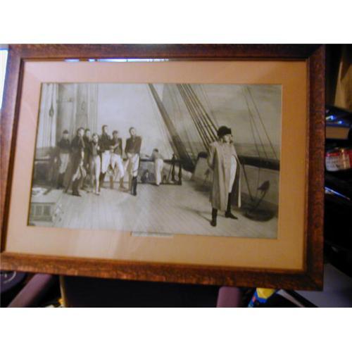 This is an amazing print in the typical Victorian style of sentimenality. Buonaparte is being shipped by the British to St Helena. He stands separated from the British officers and from the French officers who will share his exile.