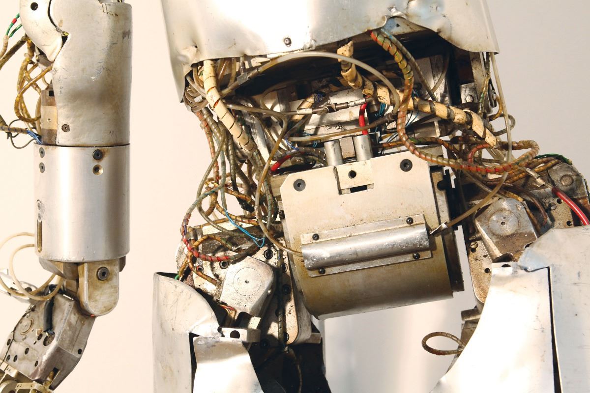 Although the development team succeeded in creating this impressive android—it could swivel its hips, raise and lower its arms and legs, shrug its shoulders, clench its fists, and even shake hands—the robot was never deployed as intended. The hydraulic system could not handle the pressure needed to move the robot’s extremities without leaking, and despite some creative test solutions—including outfitting it with a scuba wetsuit—the problem was never solved. NASA ultimately dropped the project in order to direct its funding elsewhere. Nevertheless, this remarkable robot stands as a testament to the innovative creativity NASA inspired in its quest skyward. Oversized.
