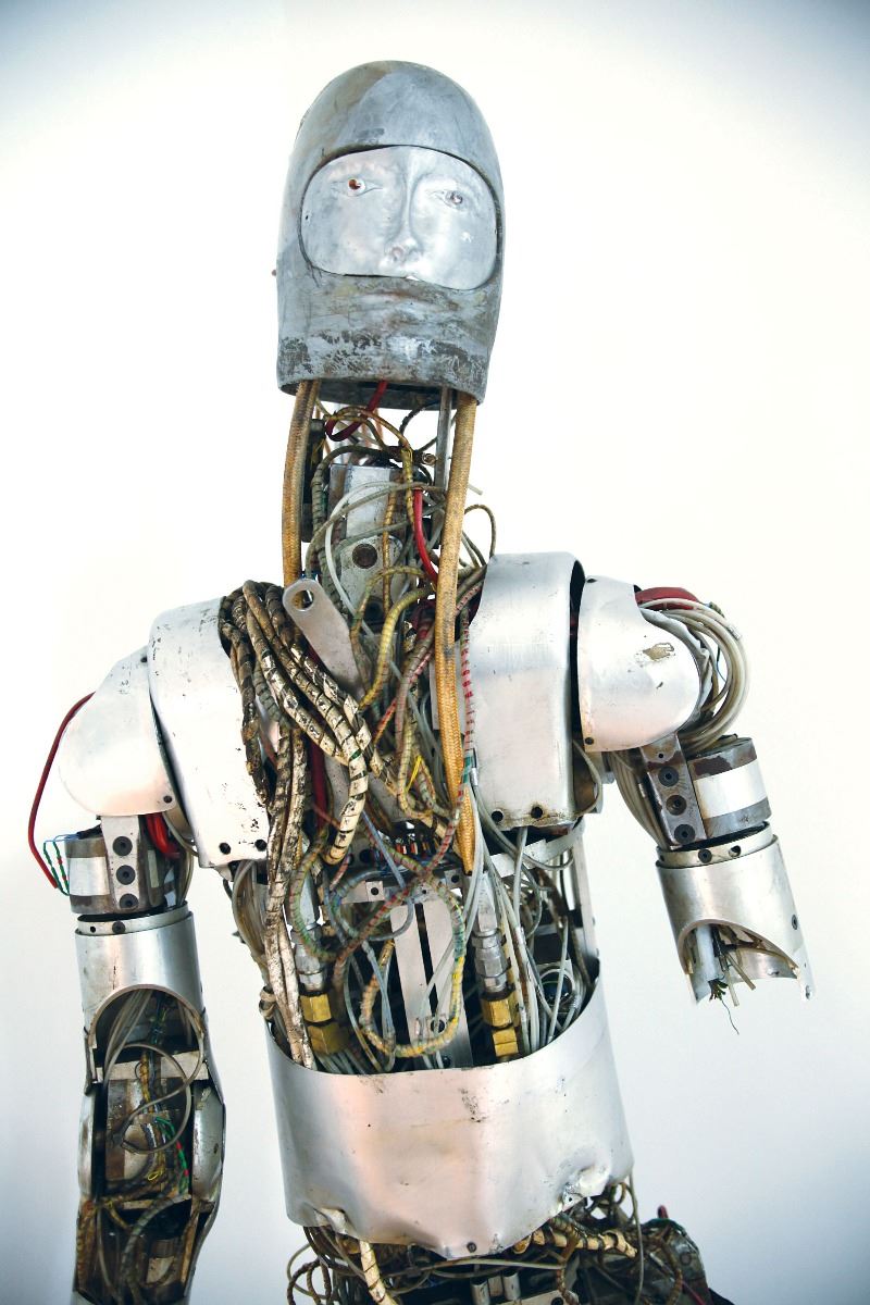 An extraordinary hydraulically powered robot dummy designed for NASA to use in testing space suits, circa 1963–1965, produced by the IIT Research Institute. The life-size dummy could simulate 35 basic human motions and was equipped with torque sensors at each joint to gather data on forces imposed on the human body by a pressurized suit. While a person could qualitatively describe the comfort and restrictions of a certain suit, the articulated dummy could provide direct quantitative information for a more scientific method of refining the design.
