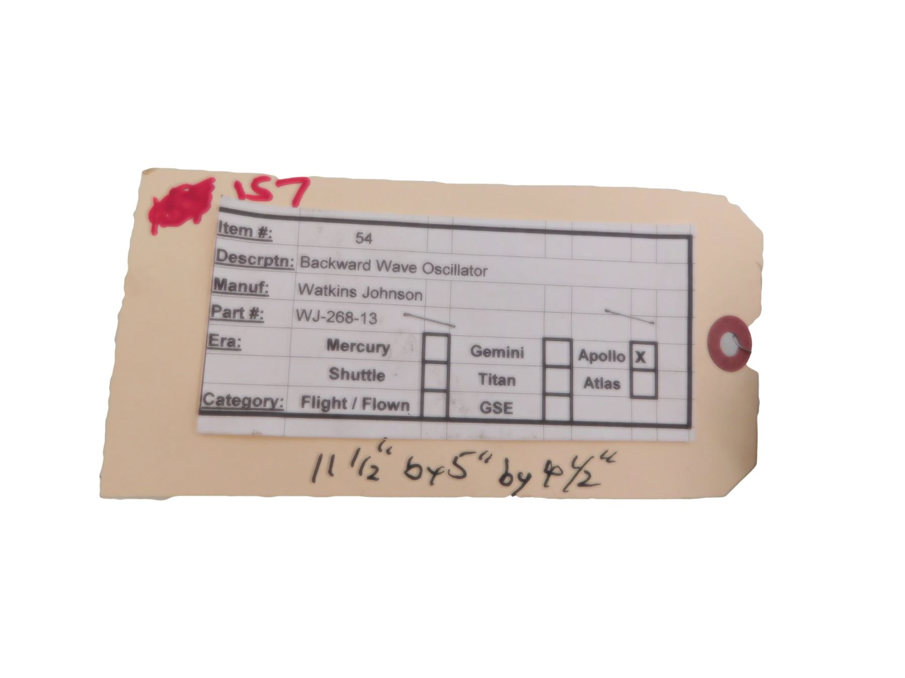 NASA Apollo Mission Backward Wave Oscillator Manufacturer Watkins Johnson Part no WJ-268-13 Piece is 11 1/2" x 5" x 4 1/2" All items are from the Estate of Charles Bell space auction in May of 2000 All item for this Auction Located in in Hollywood Florida Warehouse For Shipping Call today for quote they have item numbers and Pak Mail is available for all your custom packaging and shipping needs. We can package, palletize, crate, insure and ship to any Domestic or International location. All packaging and shipping fees must be paid in full before shipment is released. On international shipments, consignee is responsible for all Duties, Taxes, Customs Clearance or any destination fees that apply. Please visit our website @ www.pakmail.com/us770 for contact information or to get a quote. (Let us know you are a winning bidder from the Puckett auction so we can correctly arrange pick up for your item)