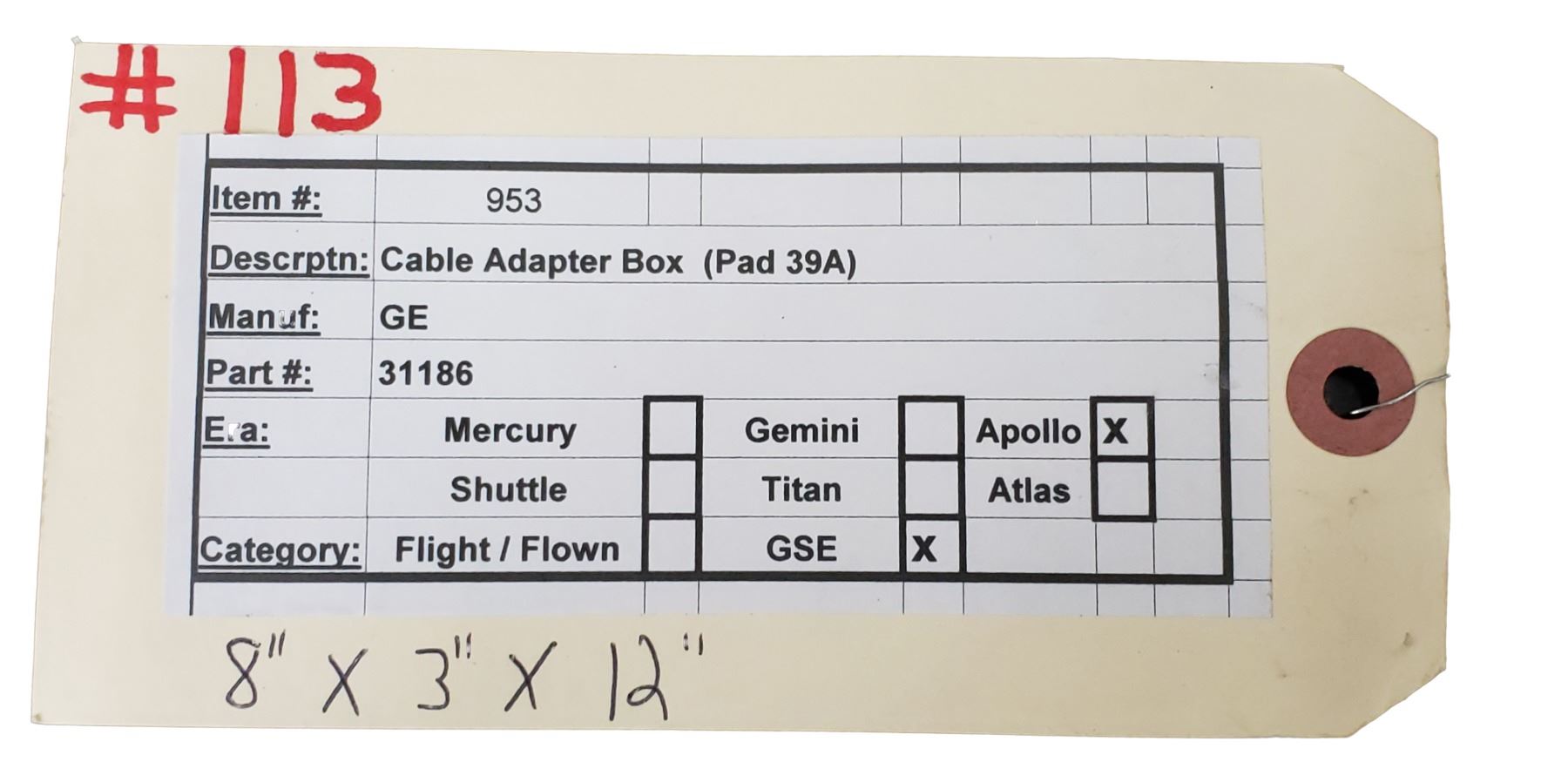 NASA Apollo Mission Cable Adapter Box (Pad 39A) Piece is 8" x 3" x 12" All items are from the Estate of Charles Bell space auction in May of 2000 All item for this Auction Located in in Hollywood Florida Warehouse For Shipping Call today for quote they have item numbers and Pak Mail is available for all your custom packaging and shipping needs. We can package, palletize, crate, insure and ship to any Domestic or International location. All packaging and shipping fees must be paid in full before shipment is released. On international shipments, consignee is responsible for all Duties, Taxes, Customs Clearance or any destination fees that apply. Please visit our website @ www.pakmail.com/us770 for contact information or to get a quote. (Let us know you are a winning bidder from the Puckett auction so we can correctly arrange pick up for your item) Telephone number is 954 522 4550 Pak Mail www.pakmail.com/us770 email us770@pakmail.com Monday Friday 9 am to 6pm Sat 10 am 3 pm