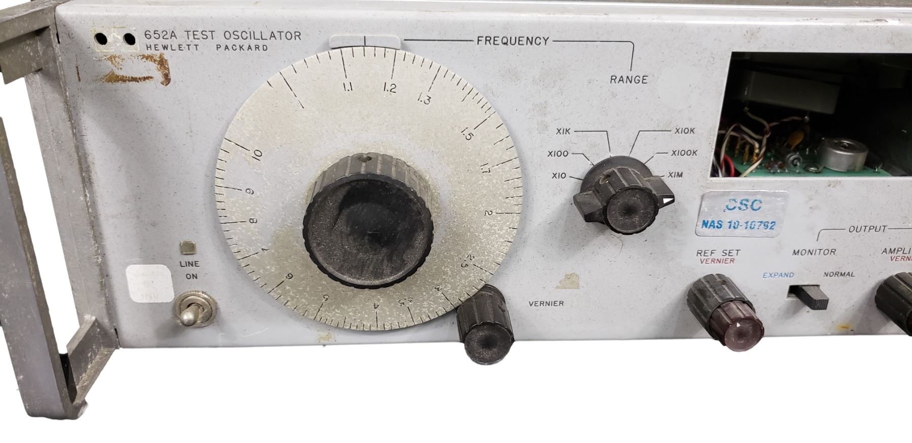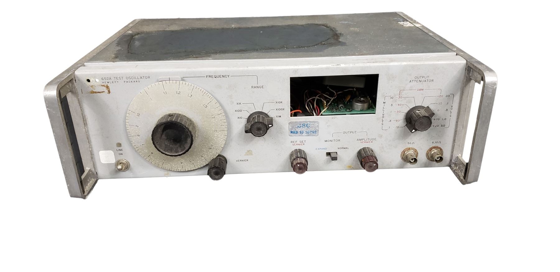 NASA Apollo Mission Test Oscillator Manufacturer HP Part No 652A Piece is 16 3/4" x 13" x 5 1/8" All items are from the Estate of Charles Bell space auction in May of 2000 All item for this Auction Located in in Hollywood Florida Warehouse For Shipping Call today for quote they have item numbers and Pak Mail is available for all your custom packaging and shipping needs. We can package, palletize, crate, insure and ship to any Domestic or International location. All packaging and shipping fees must be paid in full before shipment is released. On international shipments, consignee is responsible for all Duties, Taxes, Customs Clearance or any destination fees that apply. Please visit our website @ www.pakmail.com/us770 for contact information or to get a quote. (Let us know you are a winning bidder from the Puckett auction so we can correctly arrange pick up for your item) Telephone number is 954 522 4550 Pak Mail www.pakmail.com/us770 email us770@pakmail.com Monday Friday 9 am to 6pm Sat 10 am 3 pm