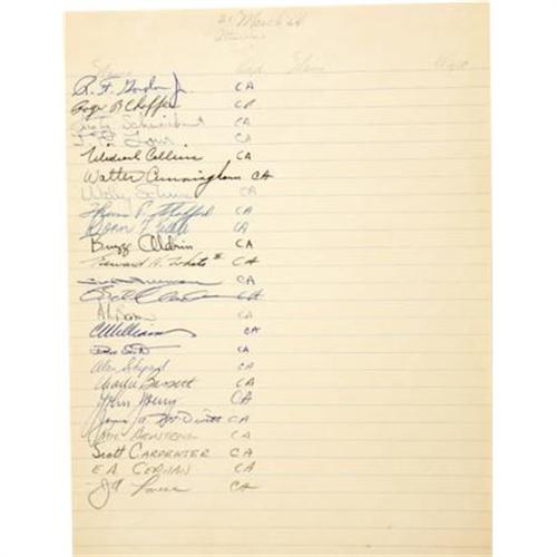 NASA "Attendance" Sheet Signed By 24 Astronauts No lot.[BR][BR][b]Shipping:[/b] Flat Material, Small