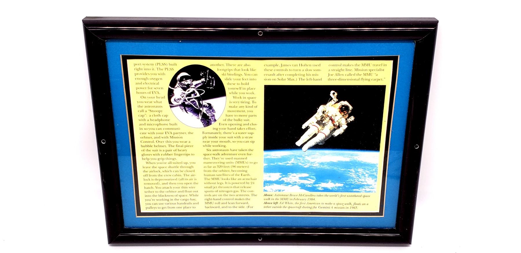 NASA Bruce McCandless and Ed White Space Walk Photo Piece is 8" x 12" Frame is 15" x 11" All items are from the Estate of Charles Bell space auction in May of 2000 All item for this Auction Located in in Hollywood Florida Warehouse For Shipping Call today for quote they have item numbers and Pak Mail is available for all your custom packaging and shipping needs. We can package, palletize, crate, insure and ship to any Domestic or International location. All packaging and shipping fees must be paid in full before shipment is released. On international shipments, consignee is responsible for all Duties, Taxes, Customs Clearance or any destination fees that apply. Please visit our website @ www.pakmail.com/us770 for contact information or to get a quote. (Let us know you are a winning bidder from the Puckett auction so we can correctly arrange pick up for your item) Telephone number is 954 522 4550 Pak Mail www.pakmail.com/us770 email us770@pakmail.com Monday Friday 9 am to 6pm Sat 10 am 3 pm