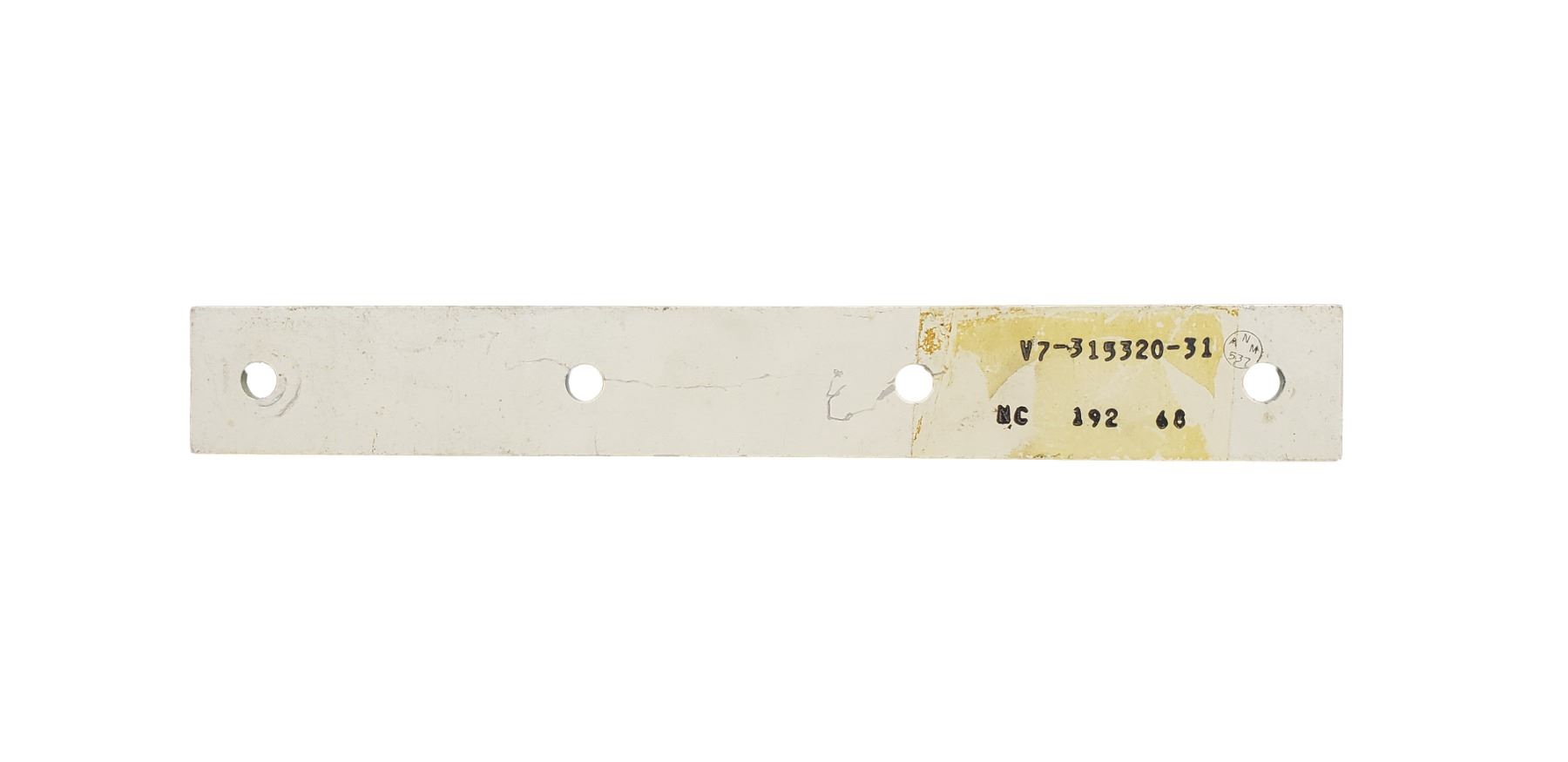 NASA Flown Space Shuttle Support Plate Manufacturer North American Aviation Part No V7-315320-31 Piece is 7 5/8" x 1" All items are from the Estate of Charles Bell space auction in May of 2000 All item for this Auction Located in in Hollywood Florida Warehouse For Shipping Call today for quote they have item numbers and Pak Mail is available for all your custom packaging and shipping needs. We can package, palletize, crate, insure and ship to any Domestic or International location. All packaging and shipping fees must be paid in full before shipment is released. On international shipments, consignee is responsible for all Duties, Taxes, Customs Clearance or any destination fees that apply. Please visit our website @ www.pakmail.com/us770 for contact information or to get a quote. (Let us know you are a winning bidder from the Puckett auction so we can correctly arrange pick up for your item) Telephone number is 954 522 4550 Pak Mail www.pakmail.com/us770 email us770@pakmail.com Monday Friday 9 am to 6pm Sat 10 am 3 pm