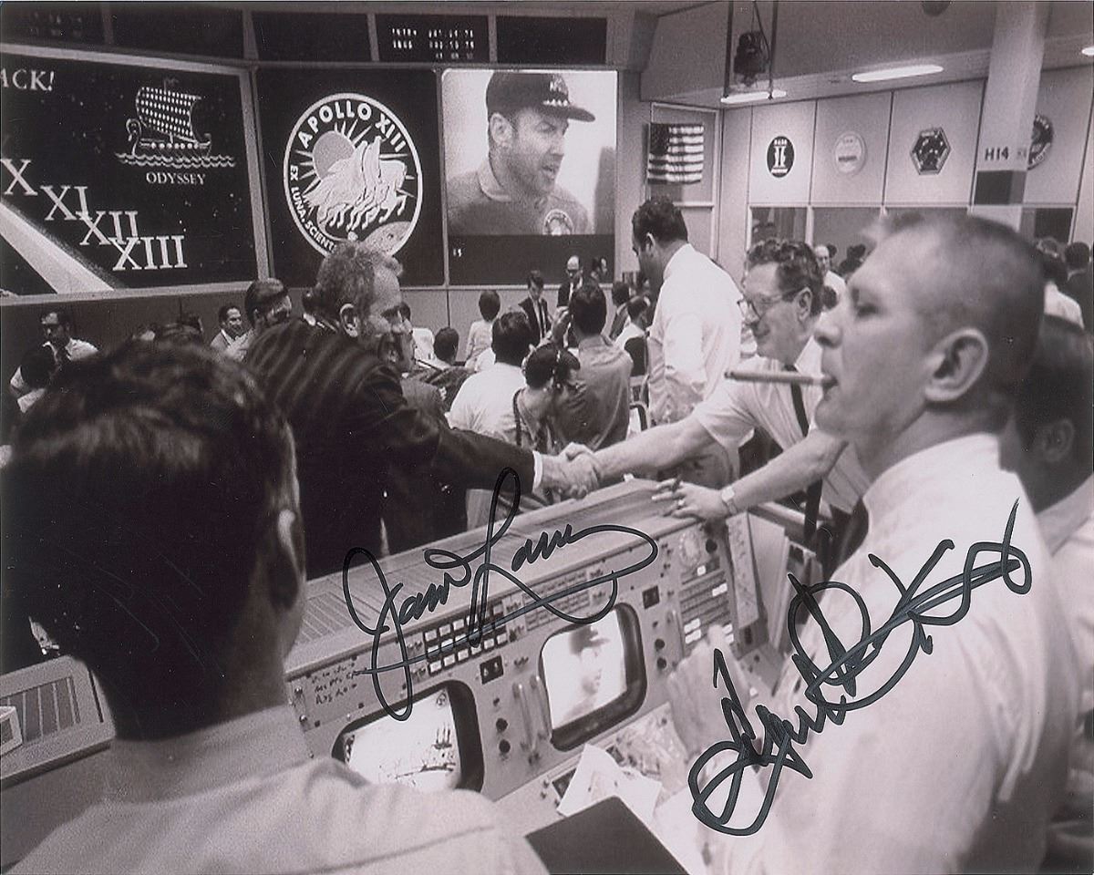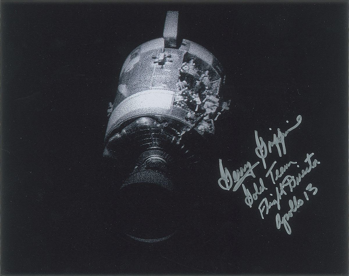 Four items signed by notable NASA personnel, including: James Lovell and Gene Kranz (SP); Gerry Griffin (SP); Cece Bibby (SP); and Stephen Bales (FDC). In overall fine condition.