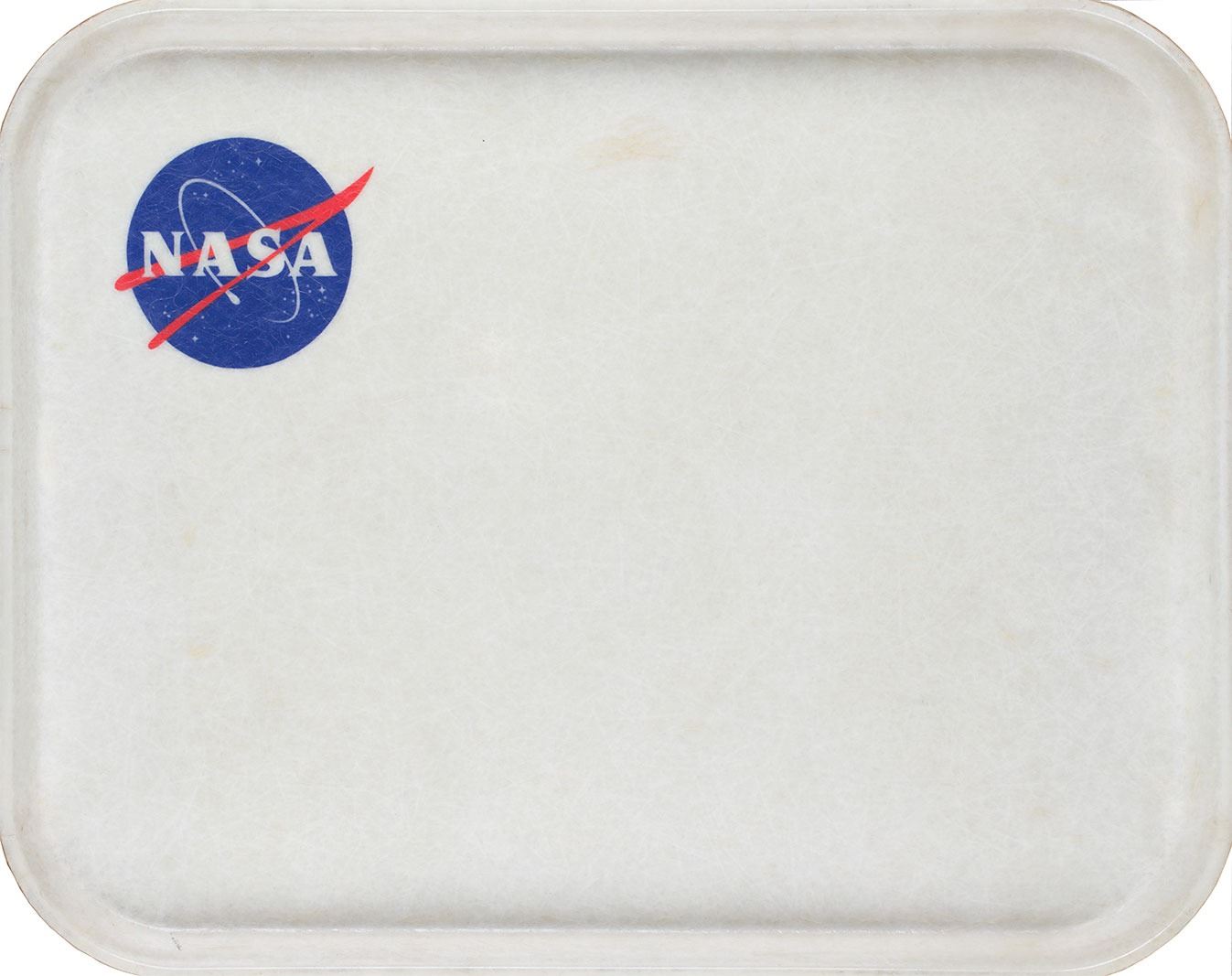 Vintage NASA lunch tray with a 'meatball' logo in the upper left, 18? x 14?, manufactured by Camtray, Cambro Manufacturing Co., Huntington Beach, California. In fine condition.