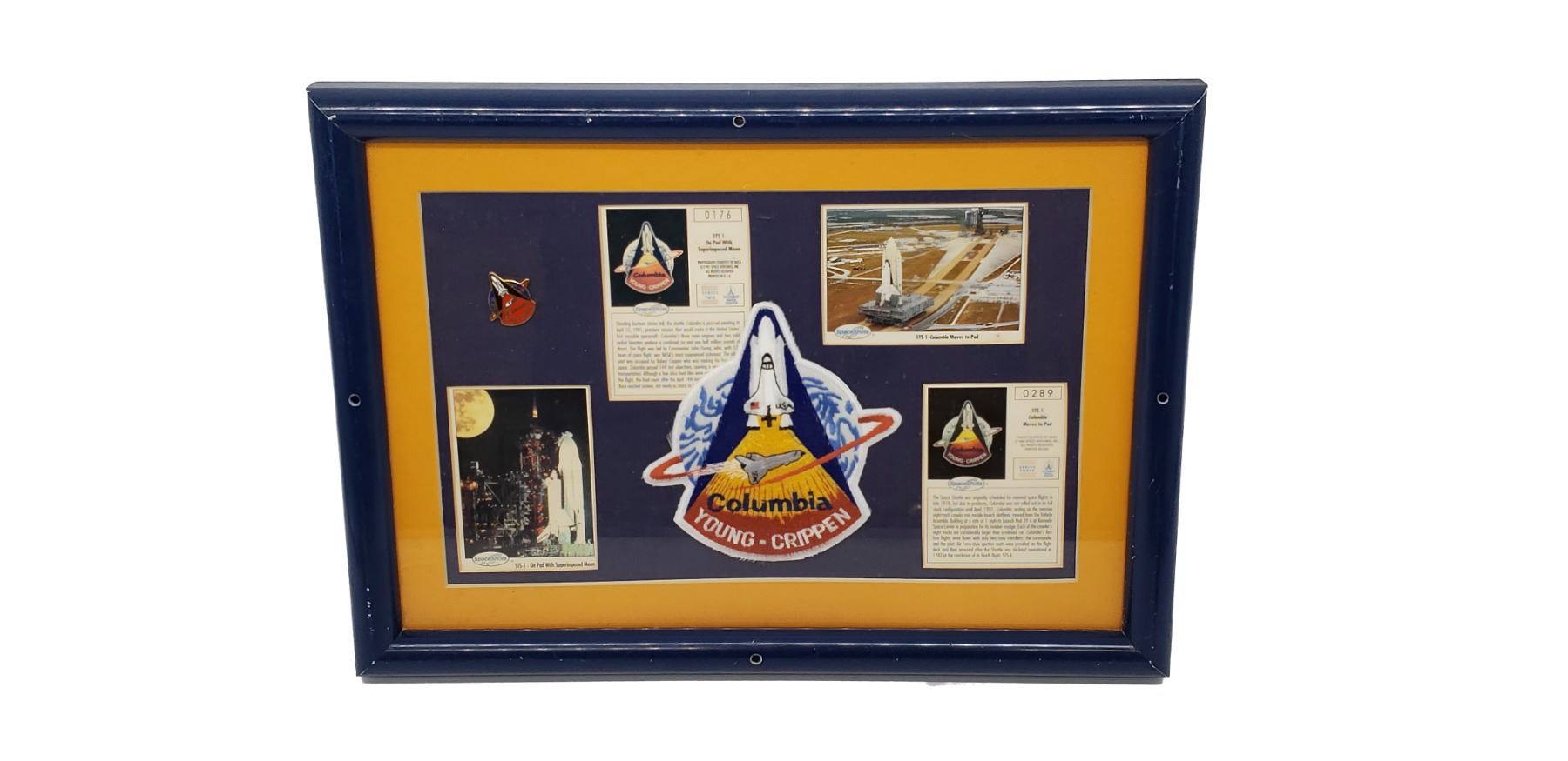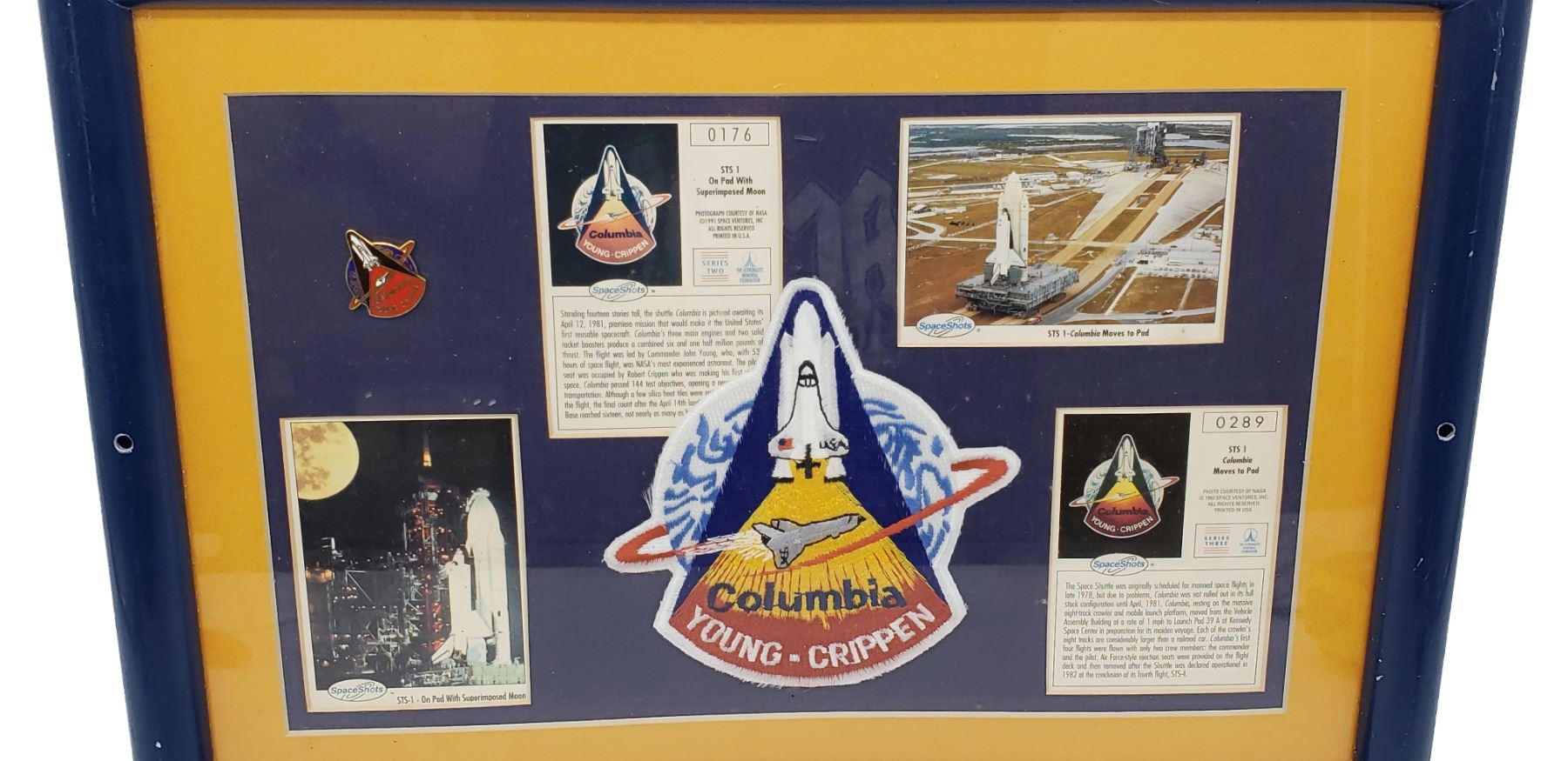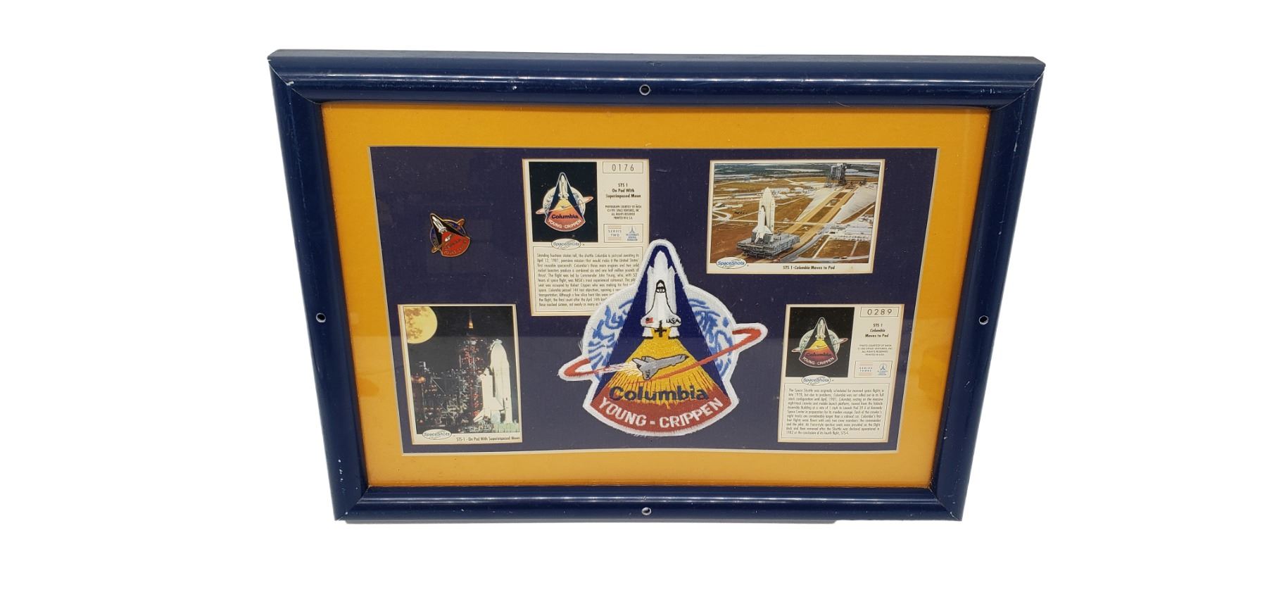 NASA Space Shuttle Spaceshots Patch and Pin 11" x 7" Frame is 14" x 10 1/4" All items are from the Estate of Charles Bell space auction in May of 2000 All item for this Auction Located in in Hollywood Florida Warehouse For Shipping Call today for quote they have item numbers and Pak Mail is available for all your custom packaging and shipping needs. We can package, palletize, crate, insure and ship to any Domestic or International location. All packaging and shipping fees must be paid in full before shipment is released. On international shipments, consignee is responsible for all Duties, Taxes, Customs Clearance or any destination fees that apply. Please visit our website @ www.pakmail.com/us770 for contact information or to get a quote. (Let us know you are a winning bidder from the Puckett auction so we can correctly arrange pick up for your item) Telephone number is 954 522 4550 Pak Mail www.pakmail.com/us770 email us770@pakmail.com Monday Friday 9 am to 6pm Sat 10 am 3 pm