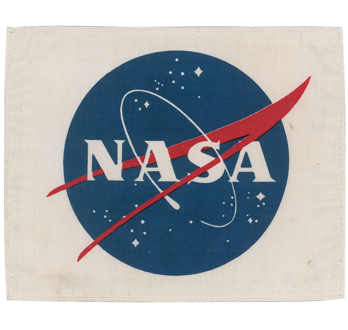 A 9 x 7.25 Beta cloth, hemmed for use, featuring a large NASA ‘meatball/vector’ emblem. In fine condition, with some scattered light soiling.