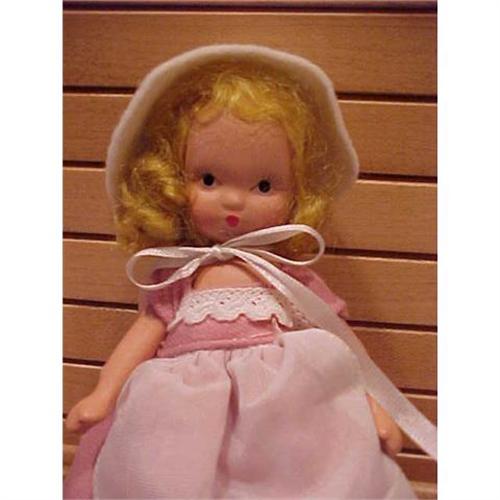 This little doll is all bisque .Her clothing is clean and in very good condition. Her only problem is the box. It is in tact but has water stains across most of it. The label says Mary had a little lamb fleece as white as snow # 152. This is a later one that does not have jointed legs or the lamb. If it were the earlier one the price would be 3 times as high.