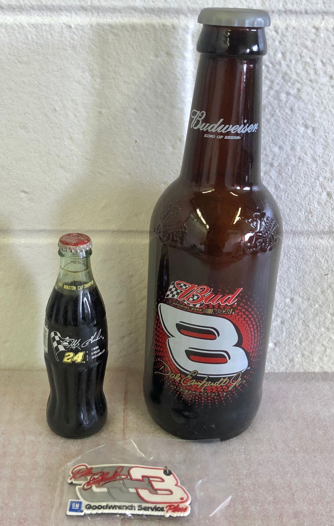 INCLUDES: NO 8 BUDWEISER COLLECTIBLE BOTTLE. NO 3 RUBBER KEY CHAIN. NO 24 FULL COKE BOTTLE.