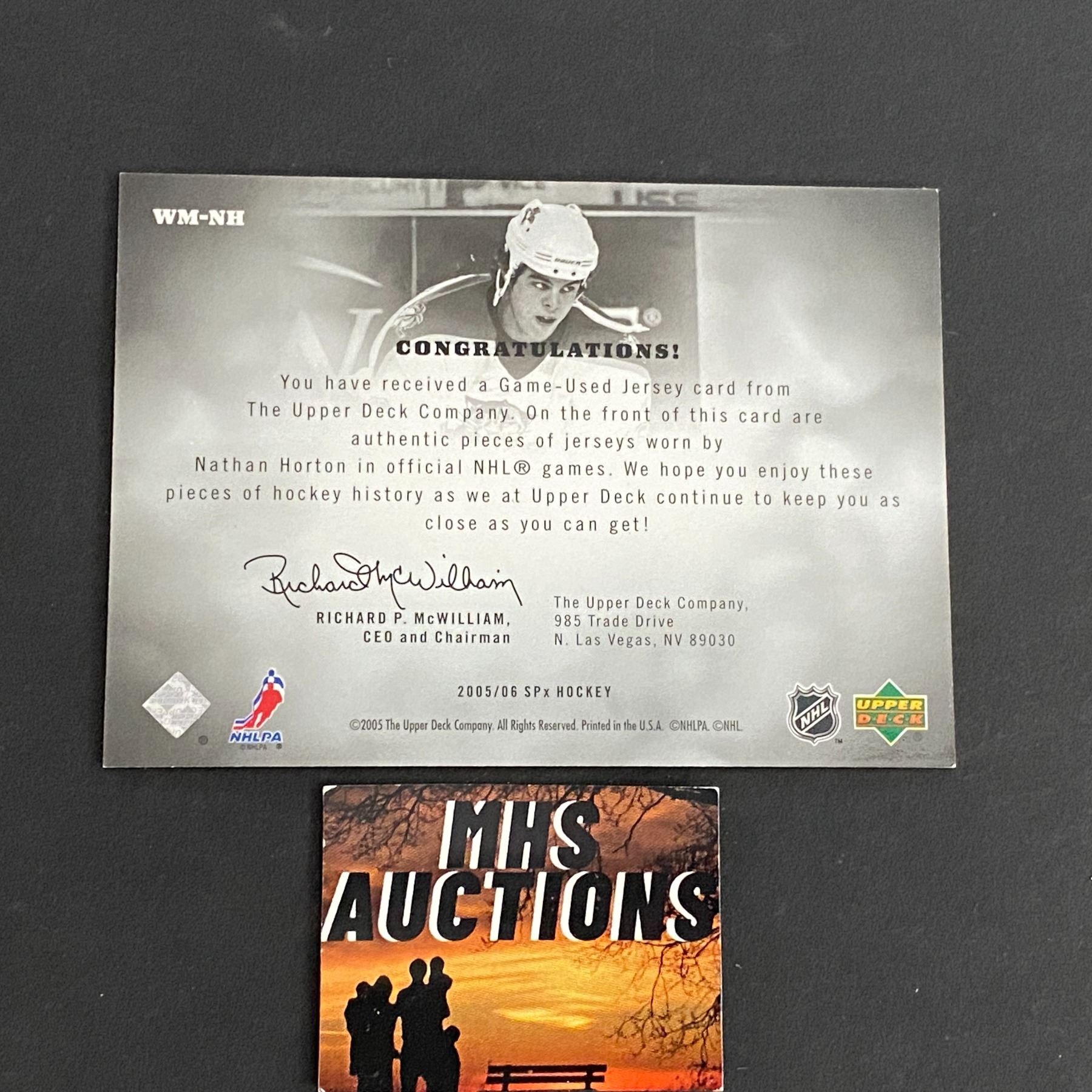 NATHAN HORTON 2005-06 SPX DUAL JERSEY HOCKEY CARD