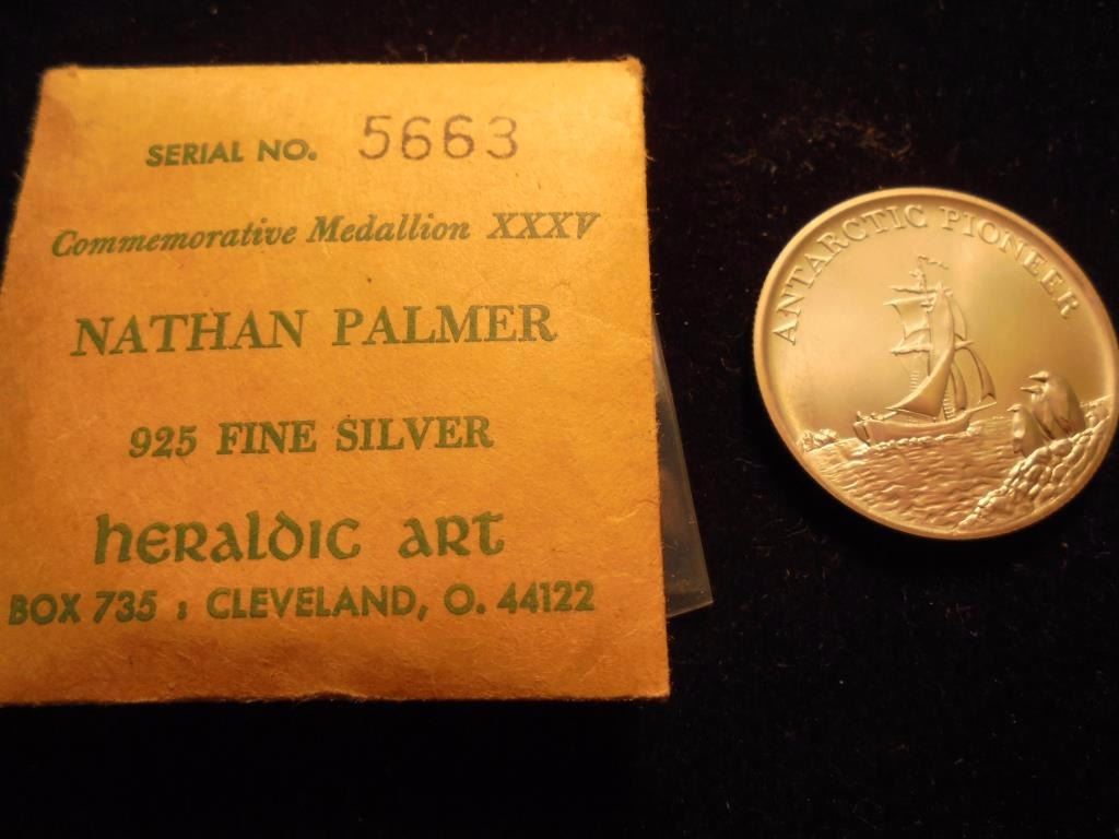 NATHAN PALMER STERLING SILVER COMMEMORATIVE MEDALLION XXXV UNC, BY HERALDIC ART, ORIGINAL MINT PACK