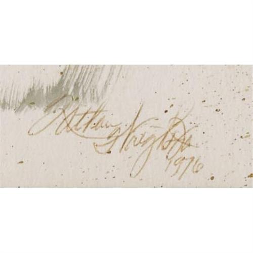 <B>NATHAN WRIGHT, JR.<BR></B></I><I>Untitled (Windswept Coastal Dunes & Gulls)</B></I>, 1976<BR>Watercolor<BR>7 x 14-1/2 inches (17.8 x 36.8 cm)<BR>Signed and dated lower right<BR> <BR><BR><b>Shipping:</b> Requires 3rd Party Shipping (<a target="_blank" href="http://www.heritageauctions.com/common/shipping.php">view shipping information</a>)
