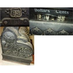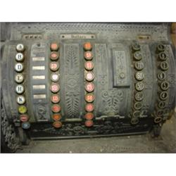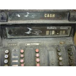 NATIONAL BRASS CASH REGISTER. Overpainted with black paint. Back glass is cracked. Serial #428631. Drawer will not shut.