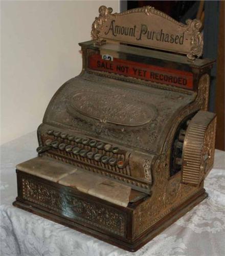 NATIONAL BRASS CASH REGISTER with original sign on top