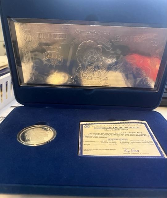 NATIONAL COLLECTORS 2003 MINT SILVER BUFFALO PROOF W/LEGAL TENDER NOTE