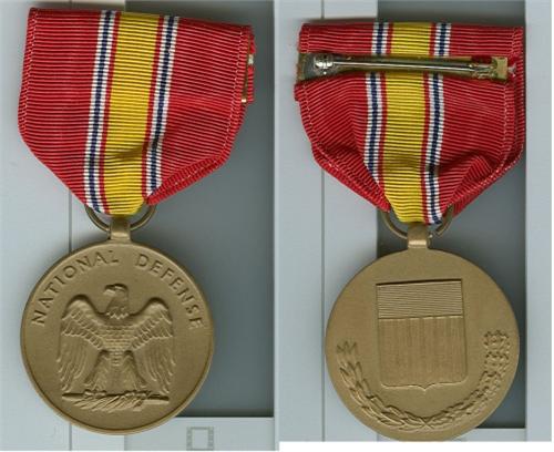 NATIONAL DEFENSE MEDAL ON DRESS RIBBON.