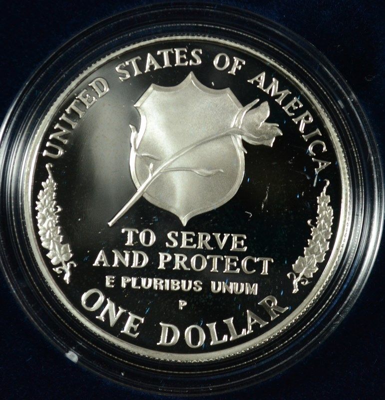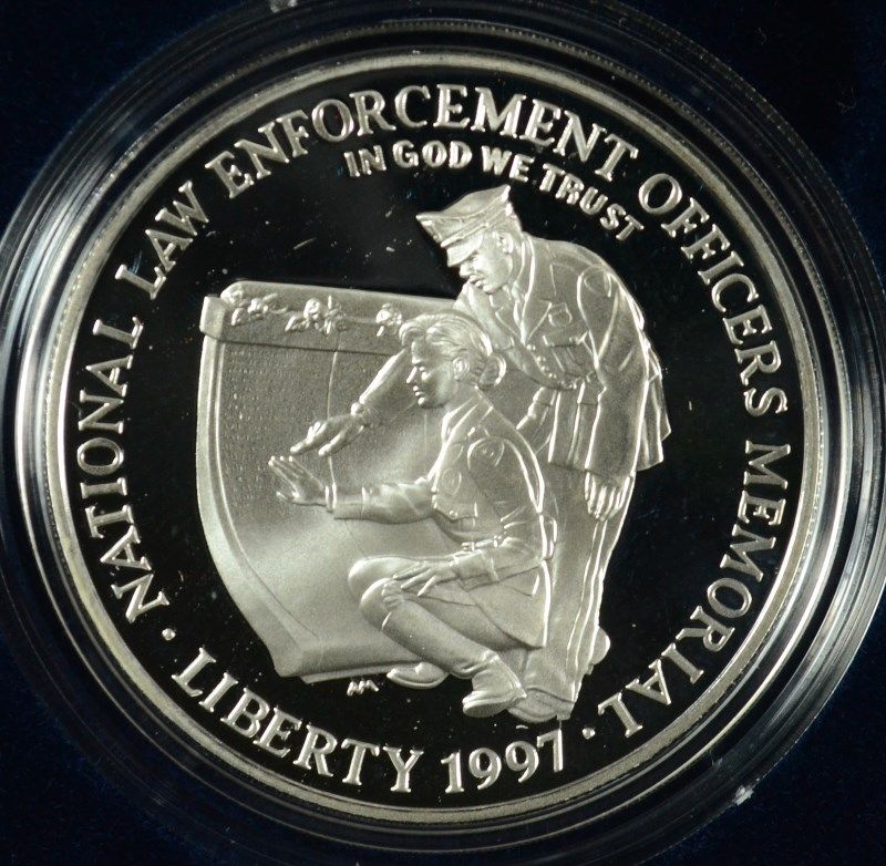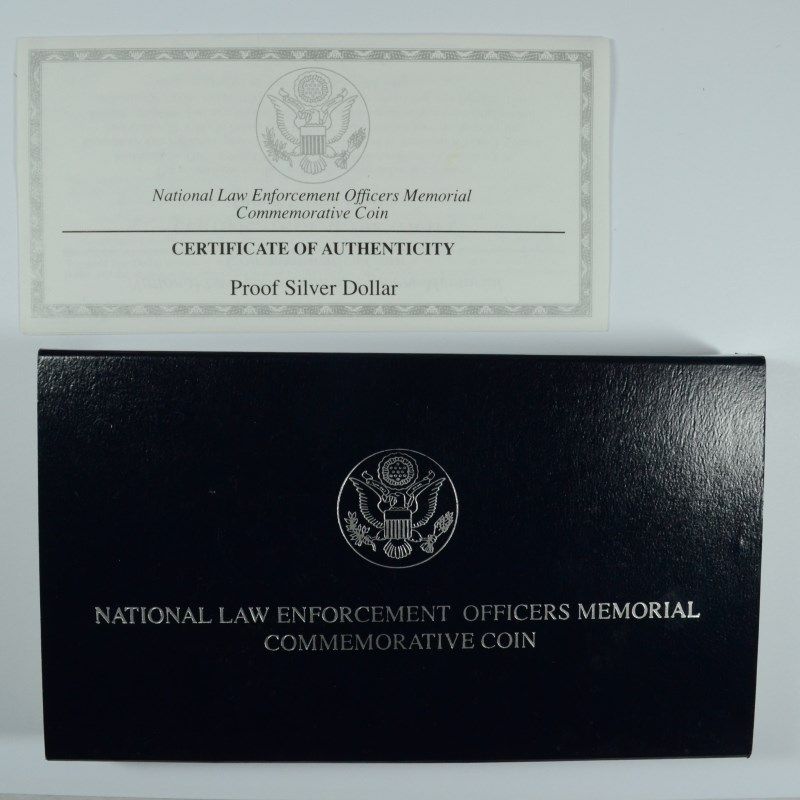 NATIONAL LAW ENFORCEMENT MEMORIAL Pf. COMMEM. SILVER DOLLAR, ORIG. PACKAGING