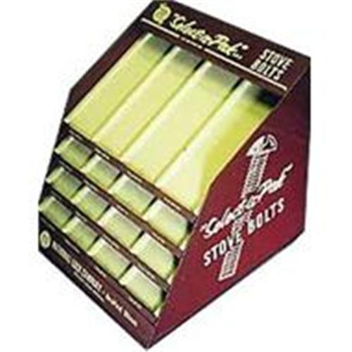 NATIONAL LOCK CO, STOVE BOLT METAL STORE DISPLAY RACK -- c12? x 12? x 12?, straight front, pictorial sides