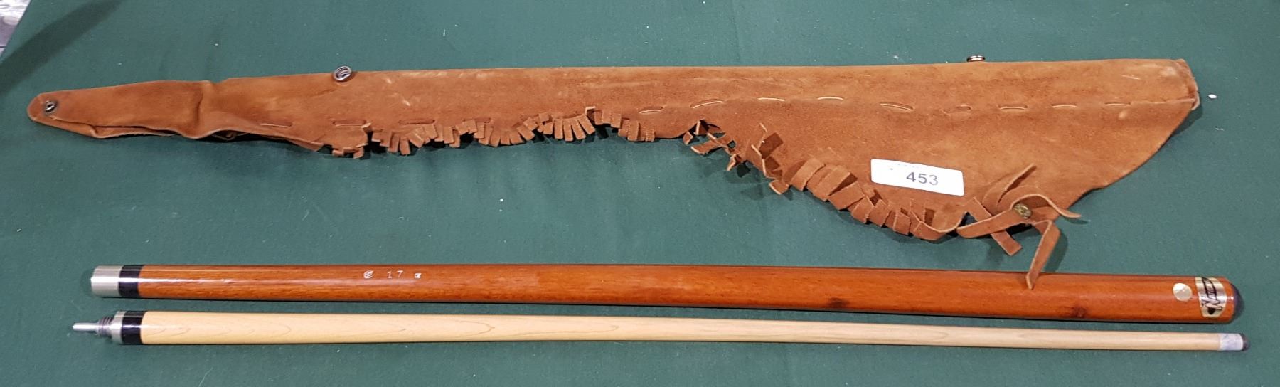 NATIONAL POOL CUE IN FRINGED SUEDE CASE
