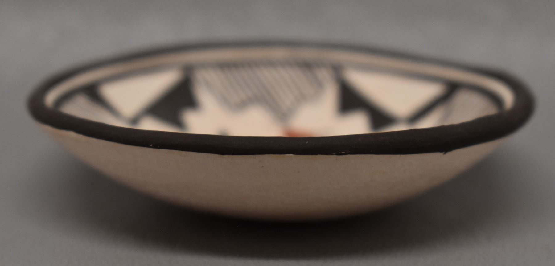 1980-90's Acoma Indian hand coiled and polychrome painted lady bug design signed E Lewis 1.5" x .5"