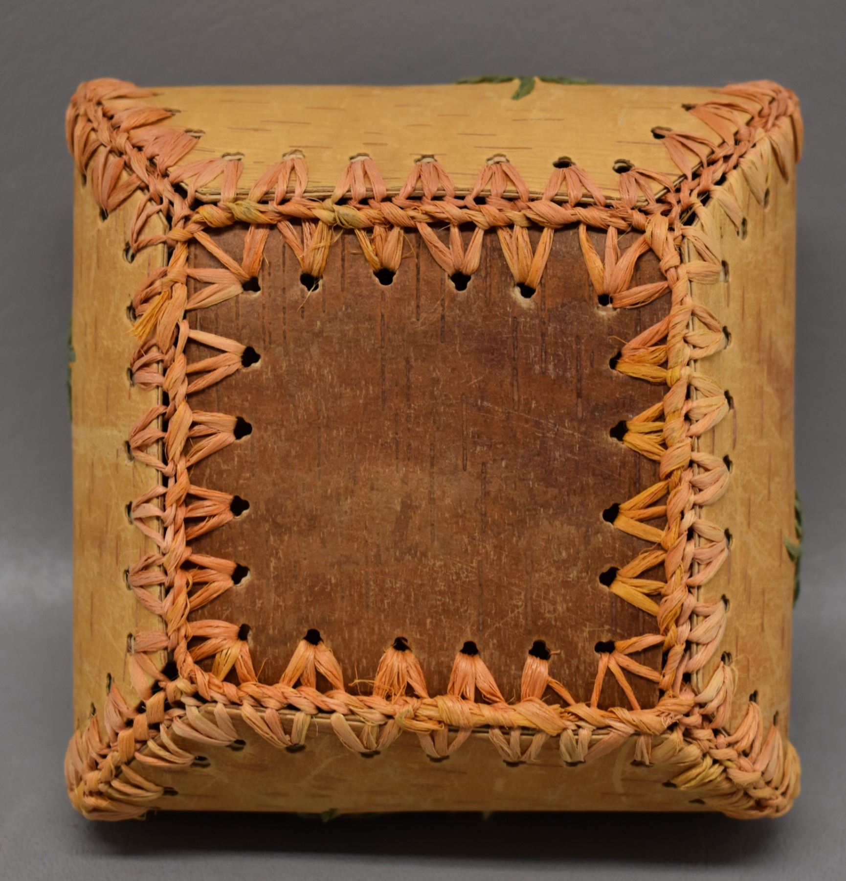 1970-80's native American Indian hand made from birch bark with floral design 5" x 3.75" has polaroid of artist holding