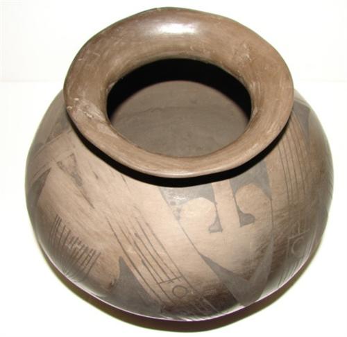 NATIVE AMERICAN BLACKWARE POTTERY VASE. Marked illegibly on bottom. 6” H