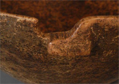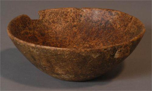 NATIVE AMERICAN BURL BOWL with handels, 13 1/2" diameter, early 19th century, condition: a few small voids filled with putting, one handle worn away, PACKING AND SHIPPING (excluding insurance) $30,