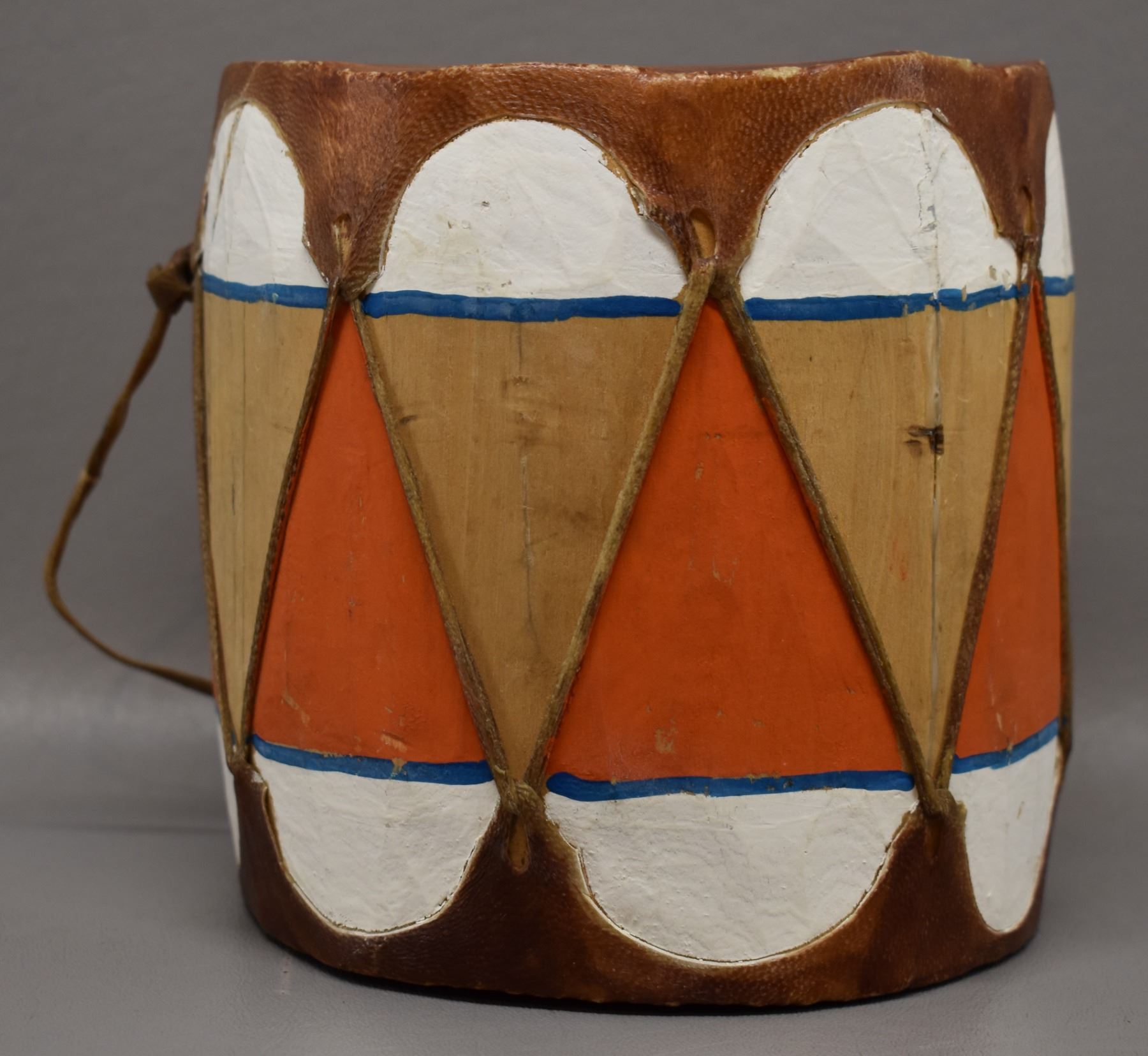 1970-80's Cochiti Indian hand carved wooden drum with hide heads 5.25" x 6"