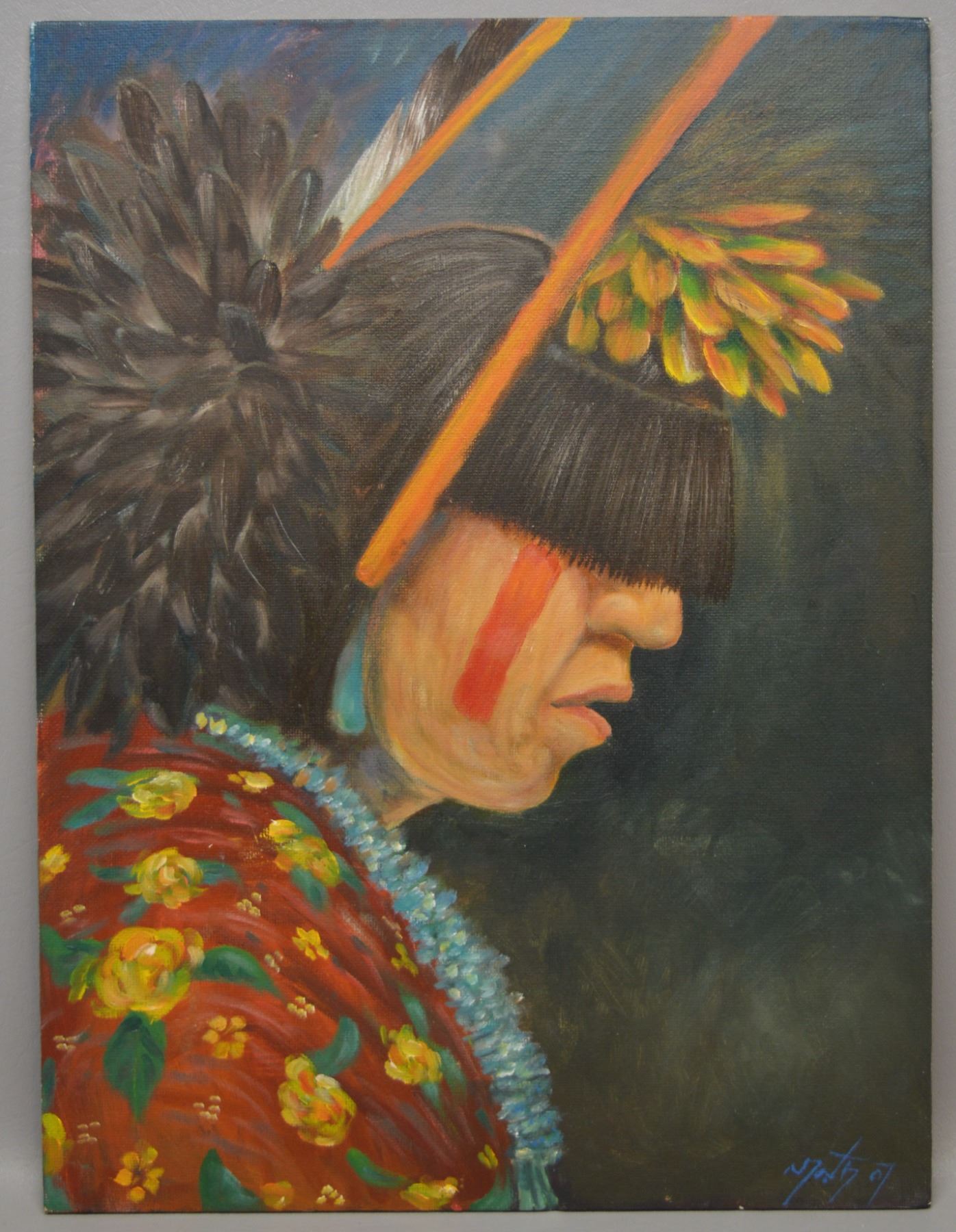2007 hopi indian hand painted oil on artist board titled " Butterfly Maiden" by Neil David 16" x 12"
