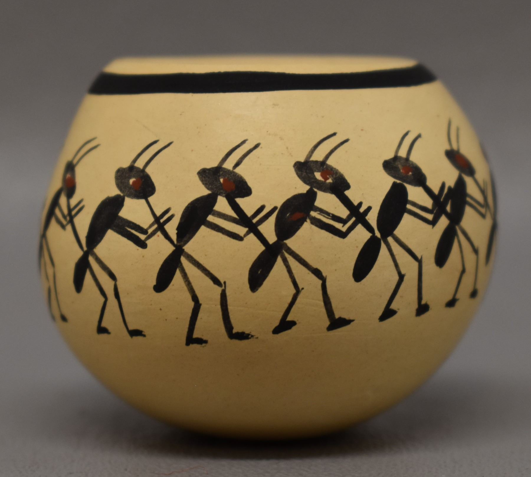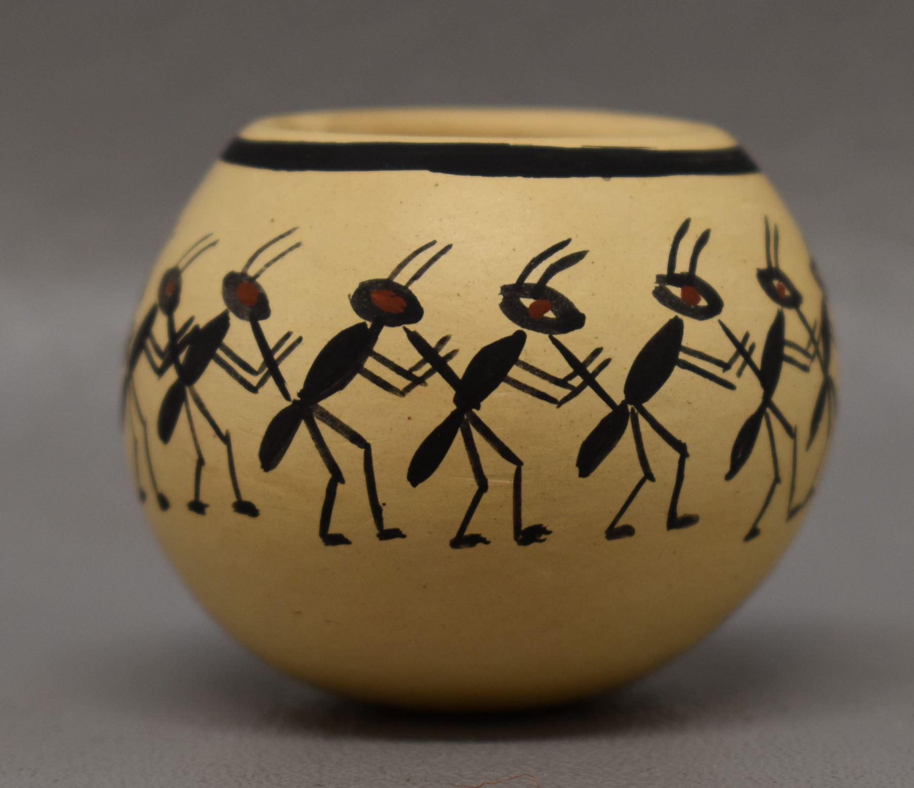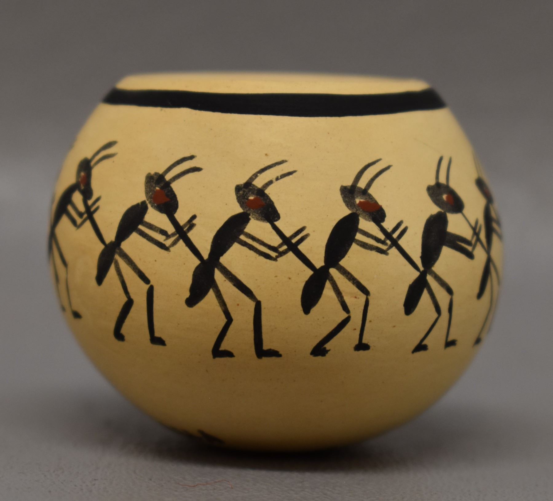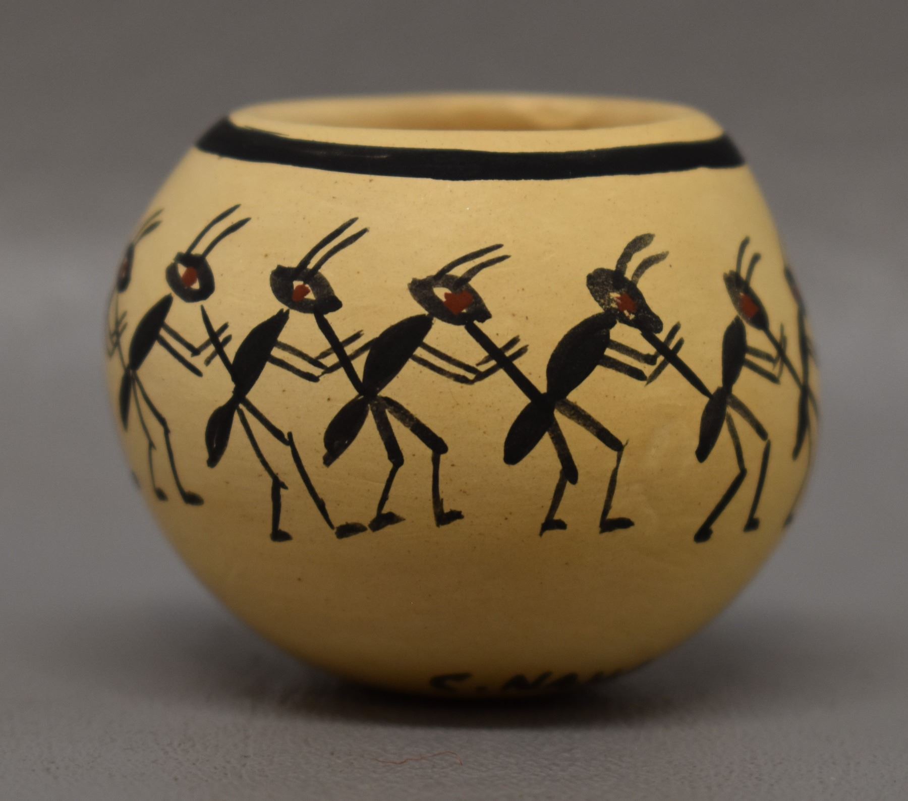 1980-90's Hopi Indian hand coiled and polychrome painted ant flute players signed C Naha nampeyo 1.75" x 1.25"