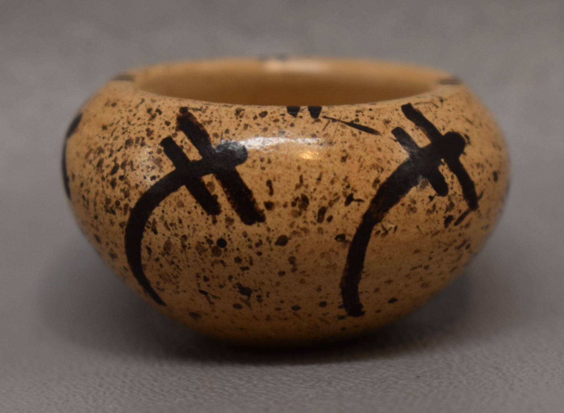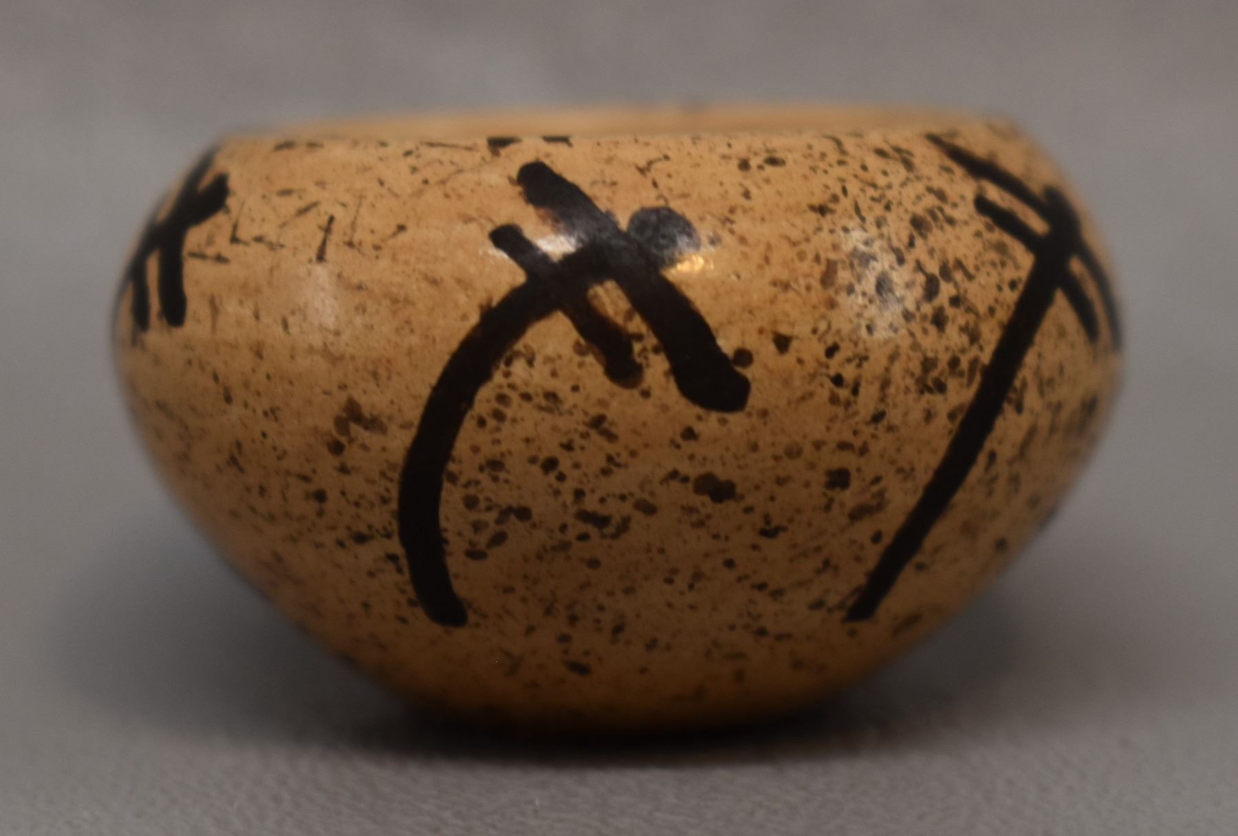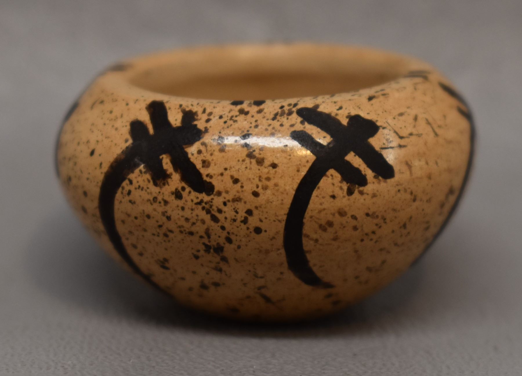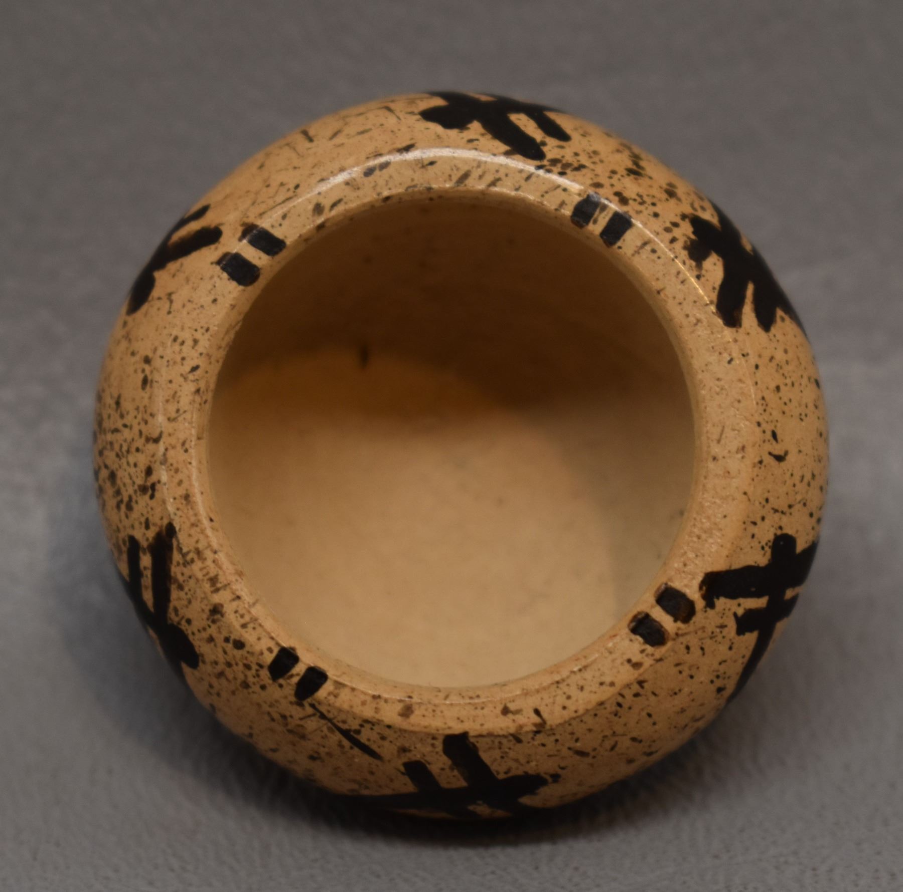 1980-90's Hopi Indian hand coiled and painted dragon fly design signed 1.25" x .75"