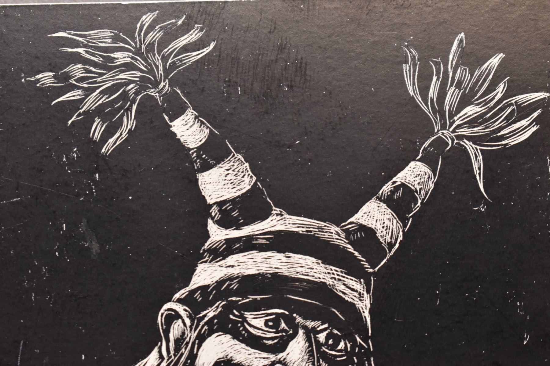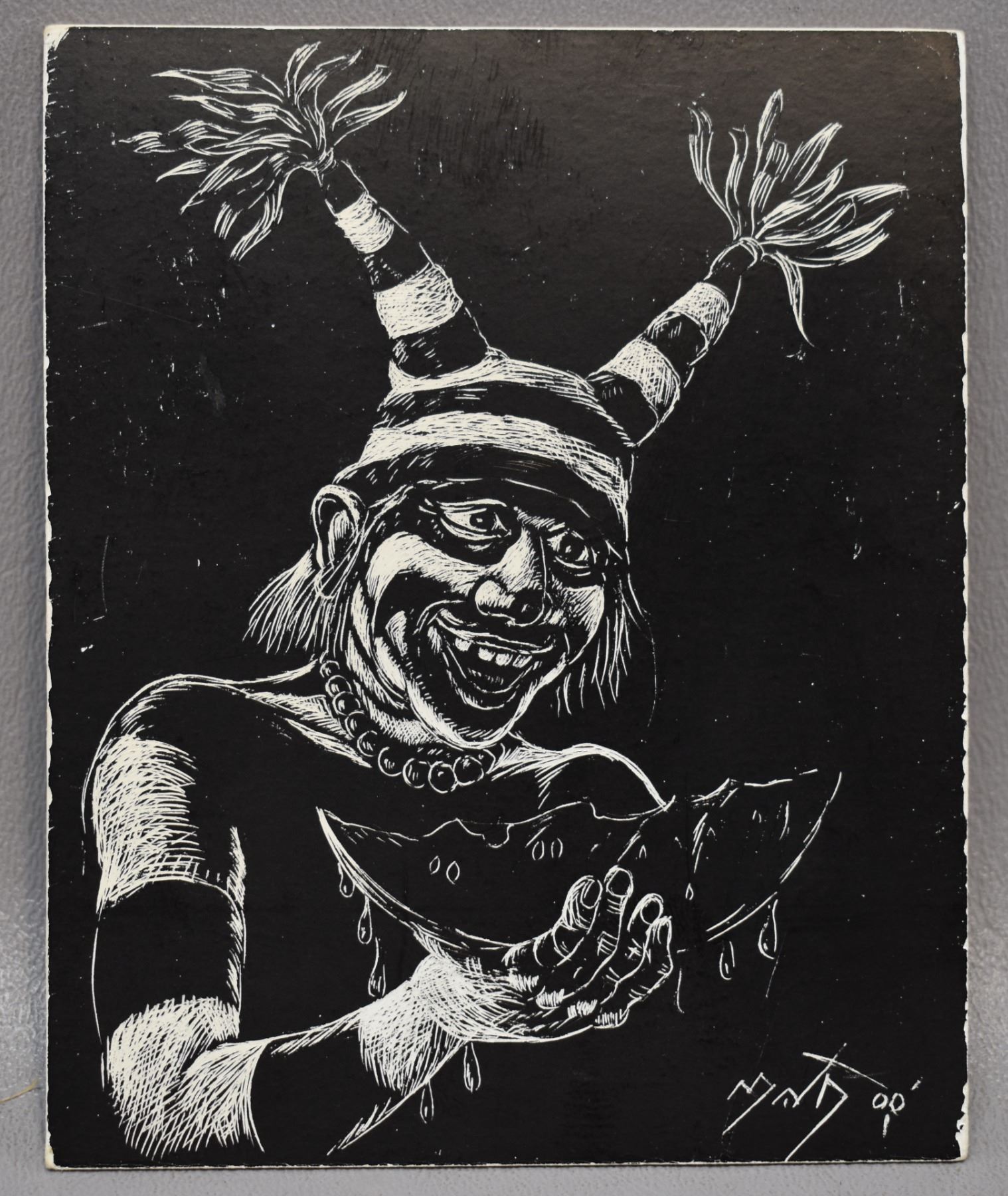 2001 Hopi Indian hand sketched of kochari eating melon signed Neil David 3.5" x 4.5"