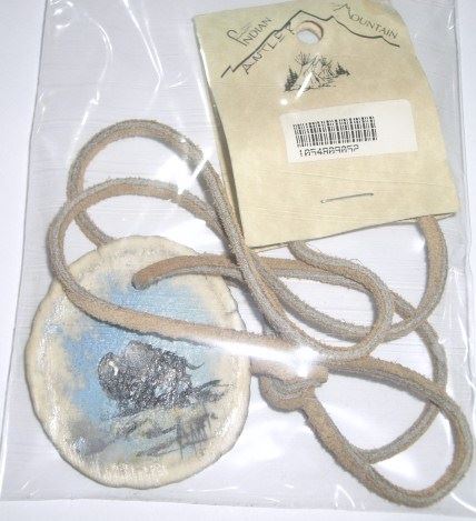 NATIVE AMERICAN INDIAN PAINTED *BUFFALO* ON ELK ANTLER WITH LEATHER NECKLACE *HANDMADE-BRAND NEW IN PACKAGE* BY INDIAN MOUNTAIN. RETAIL TAG WAS $39.99!! ITEM CAME OUT OF SAFE DEPOSIT BOX!! ***Coin, Currency & All Items Listed in this auction - Grades, Conditions and Values are not Safe Deposit Coins LLC Responsibilty. Grades, Condition and Values are determined by Consigner(s) & Buyers ONLY