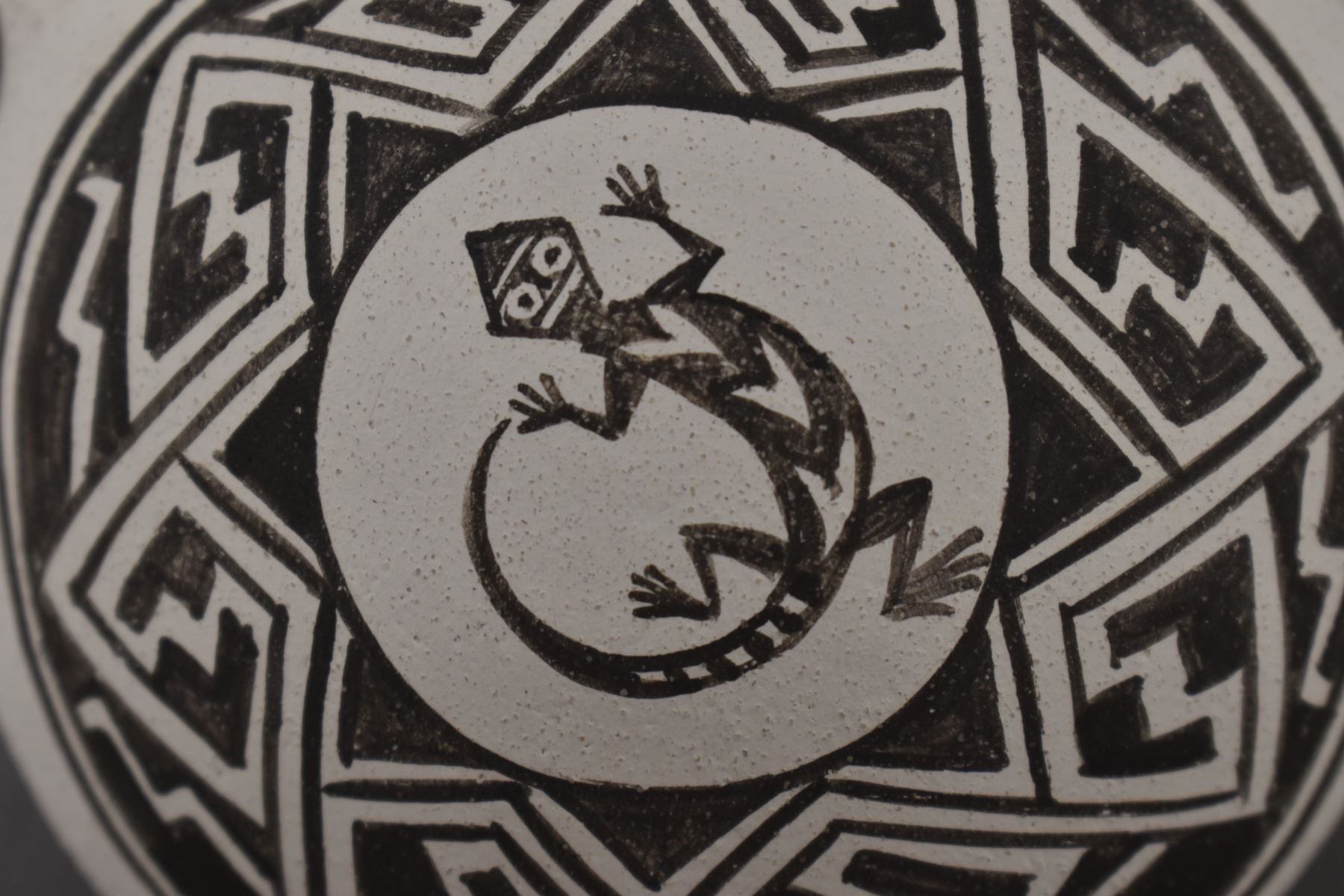 1980-90's Isleta Indian hand coiled and painted Anasazi design signed with log and W/t and KB 3.5" x 1.25"