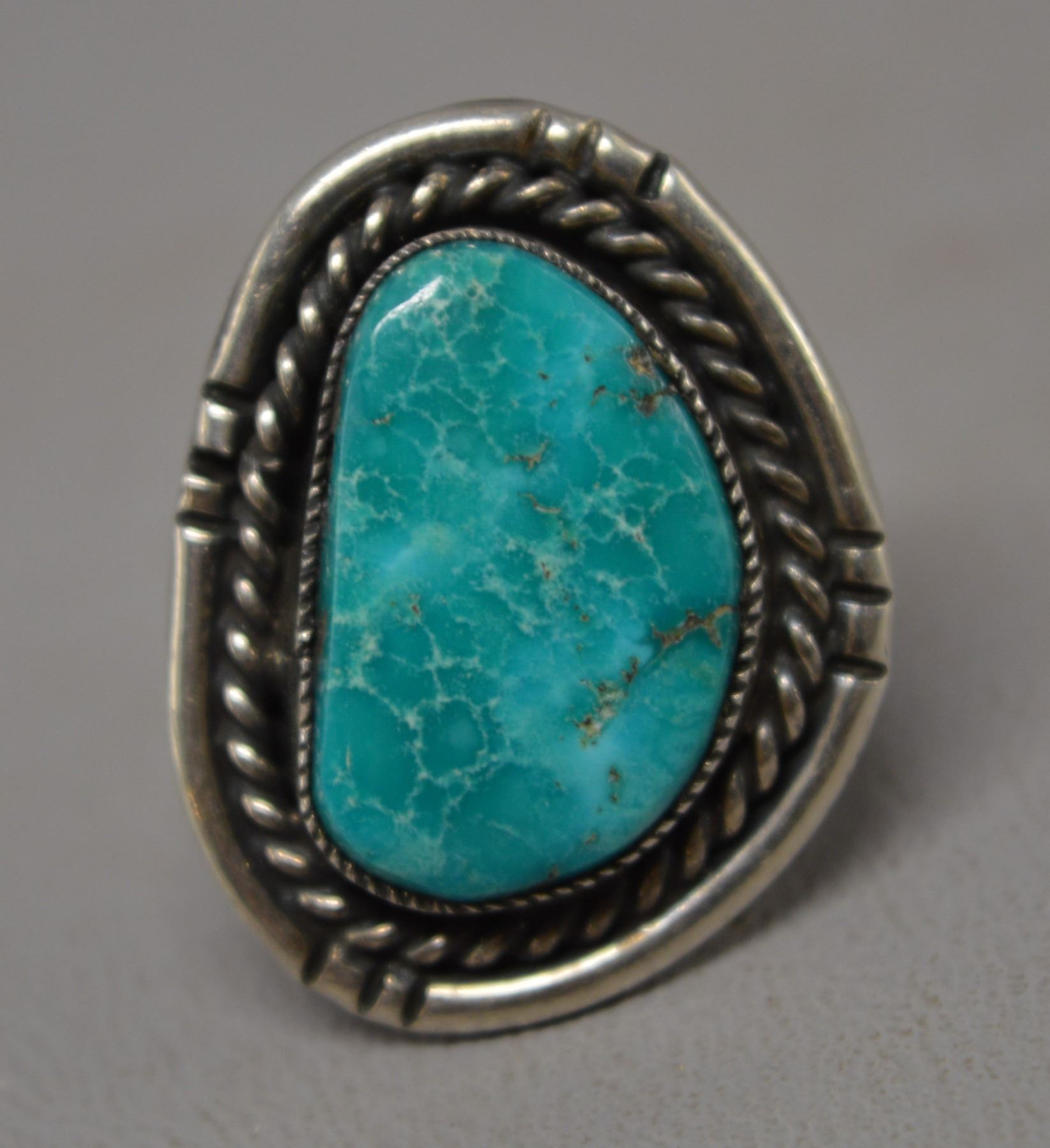 1970-80's navajo indian sterling silver hand stamped design with turqouise stone size 6.5