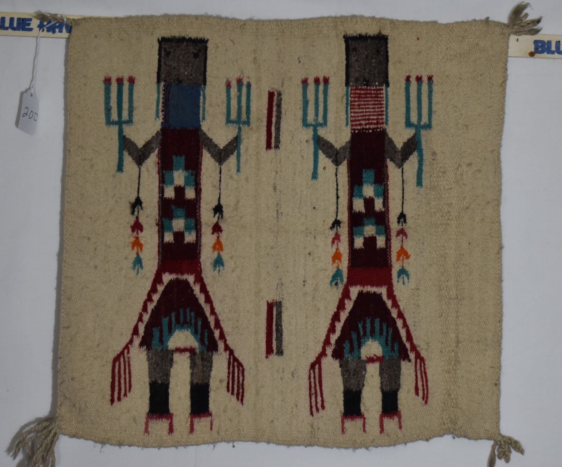 1970-80's Navajo Indian hand woven two figure Yei design 16" x 16"