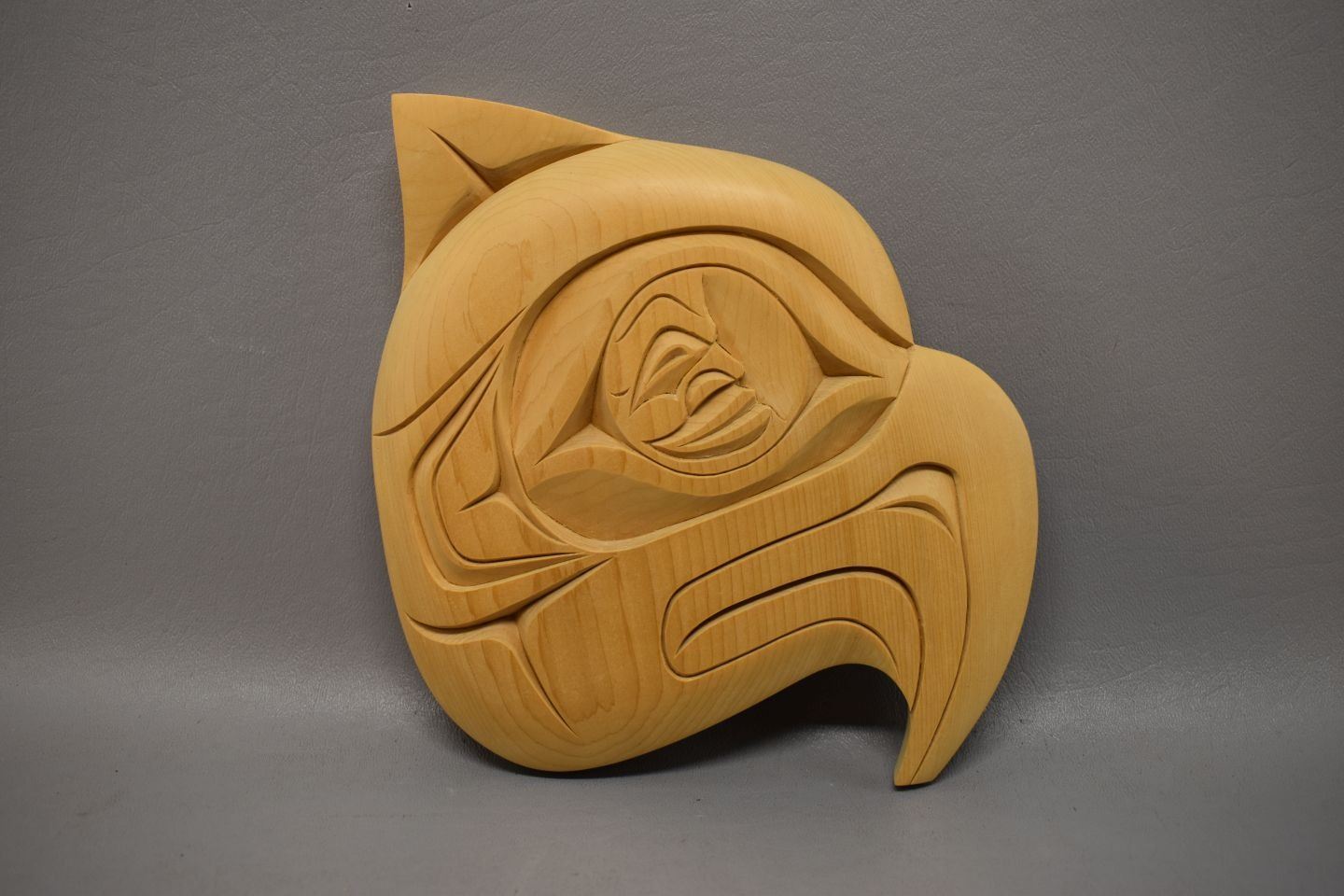 2003 north west coast Indian hand carved from cedar titled "Owl" by Darryl Baker 6.5" x 6.5"