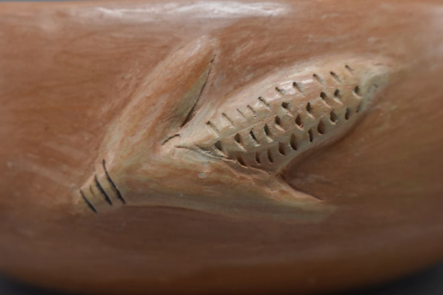 1980's hand coiled with raised corn cob design and painted design 6.5" x 2.25"