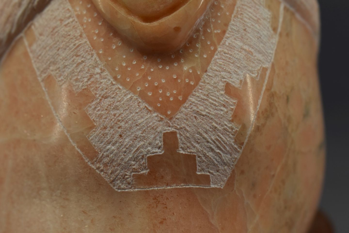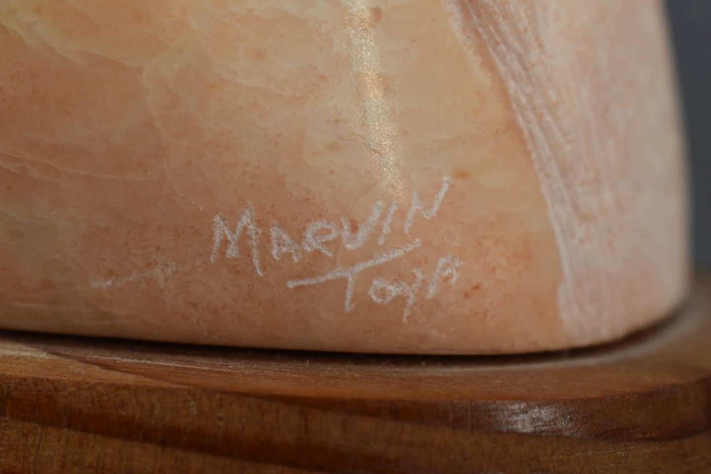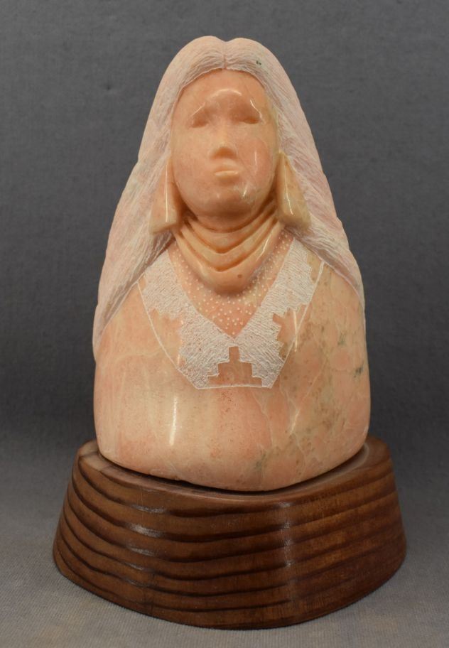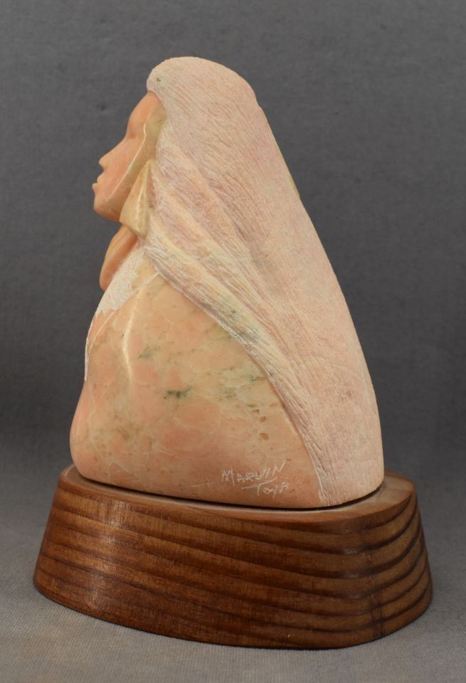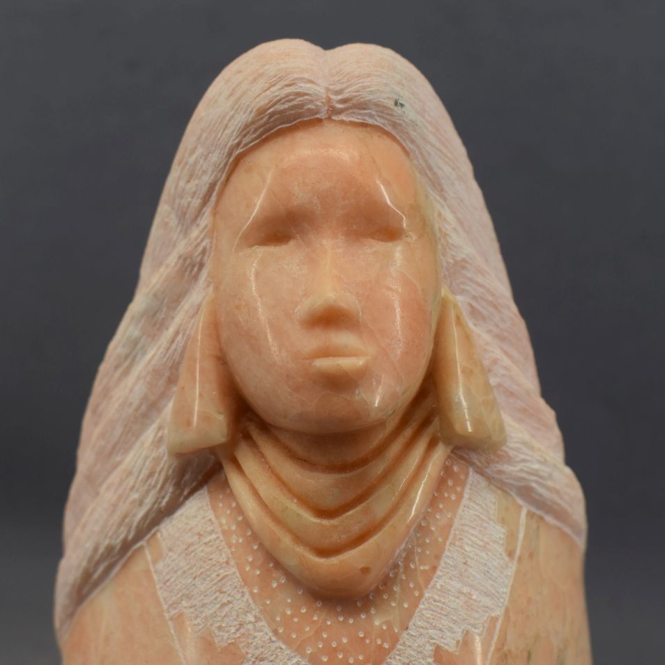 vintage pueblo Indian carved from stone depicting Indian woman signed Marvin Toya 7.5" x 5.5" including base