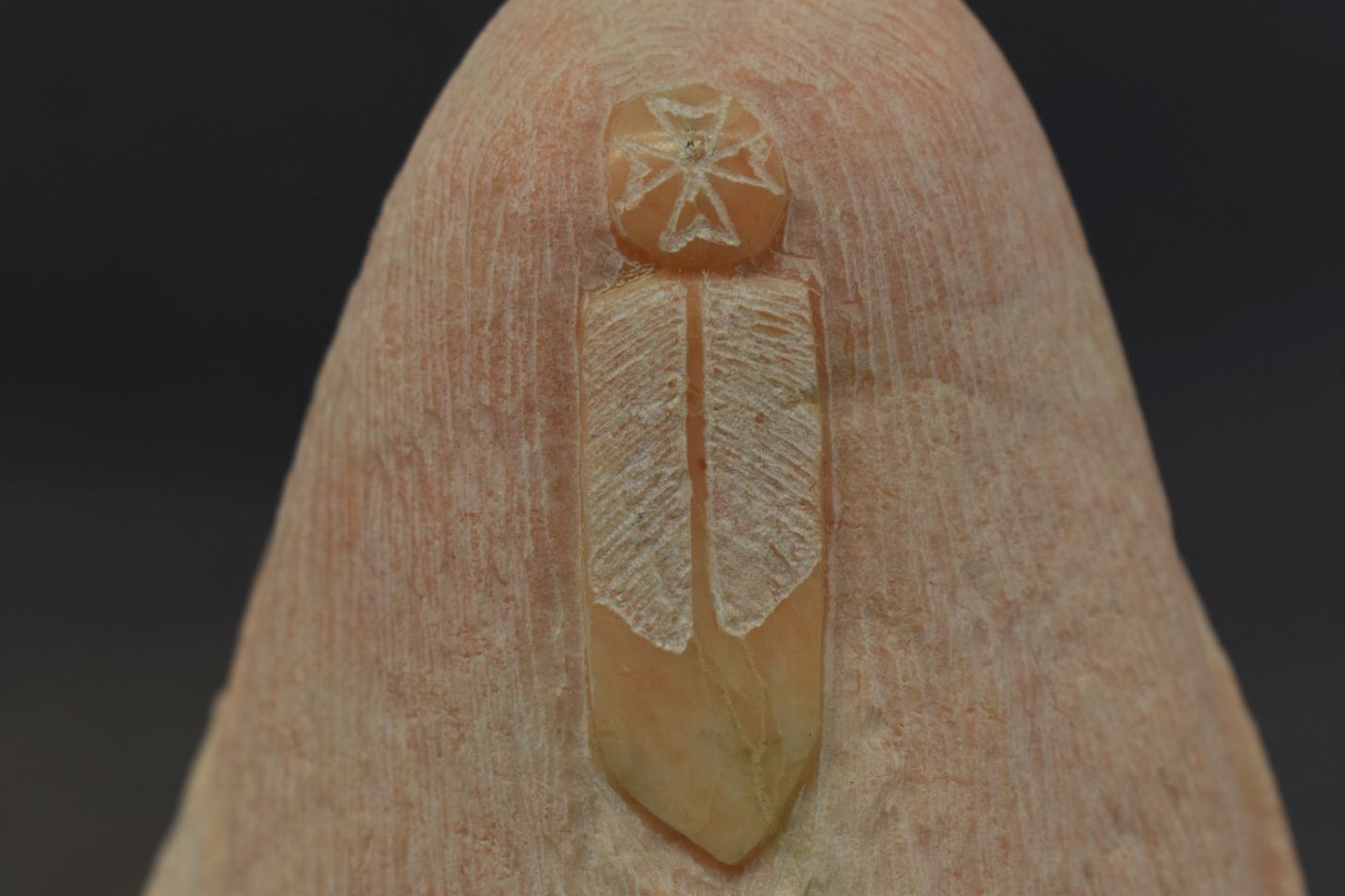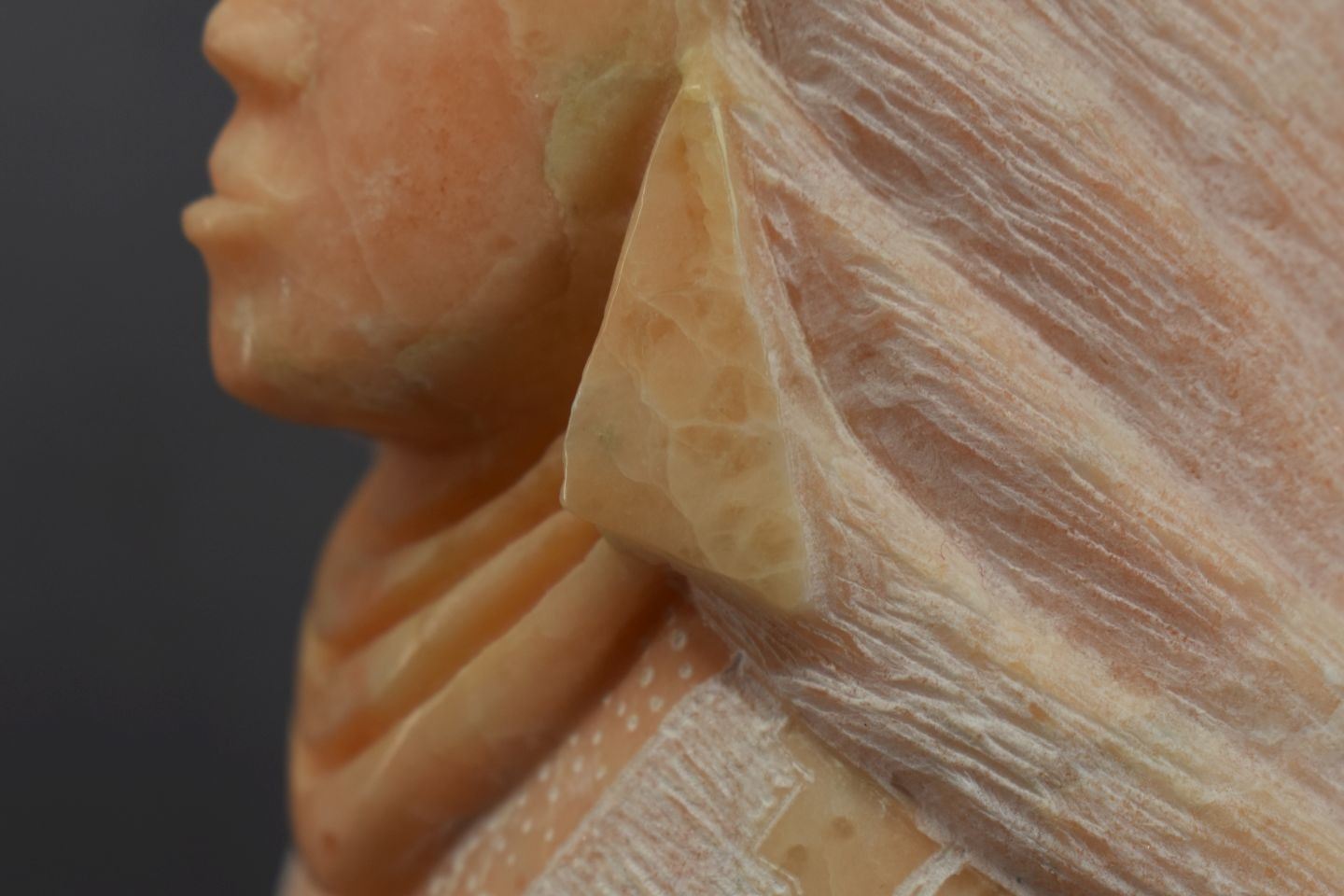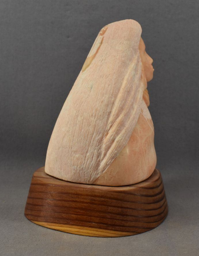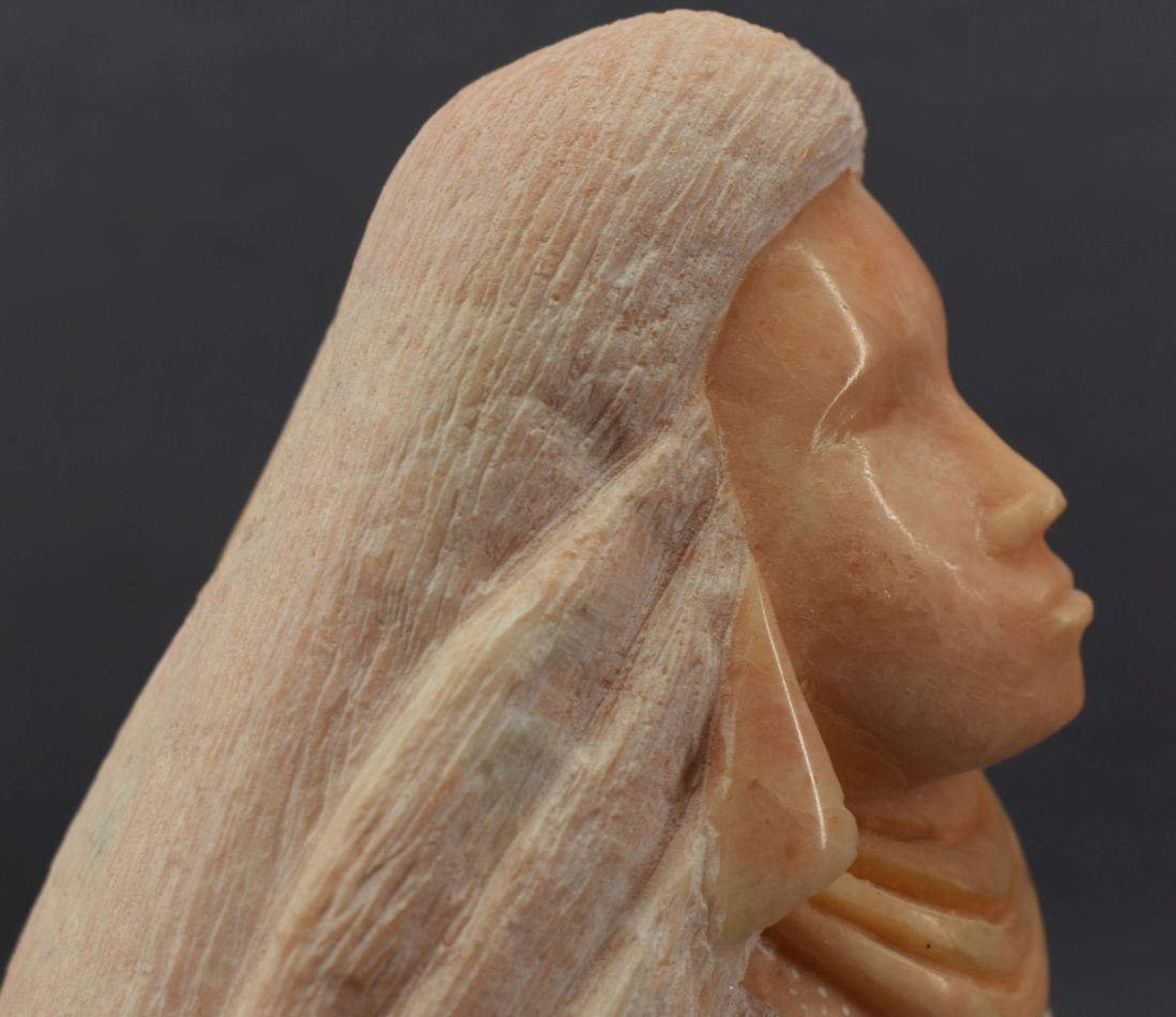 vintage pueblo Indian carved from stone depicting Indian woman signed Marvin Toya 7.5" x 5.5" including base