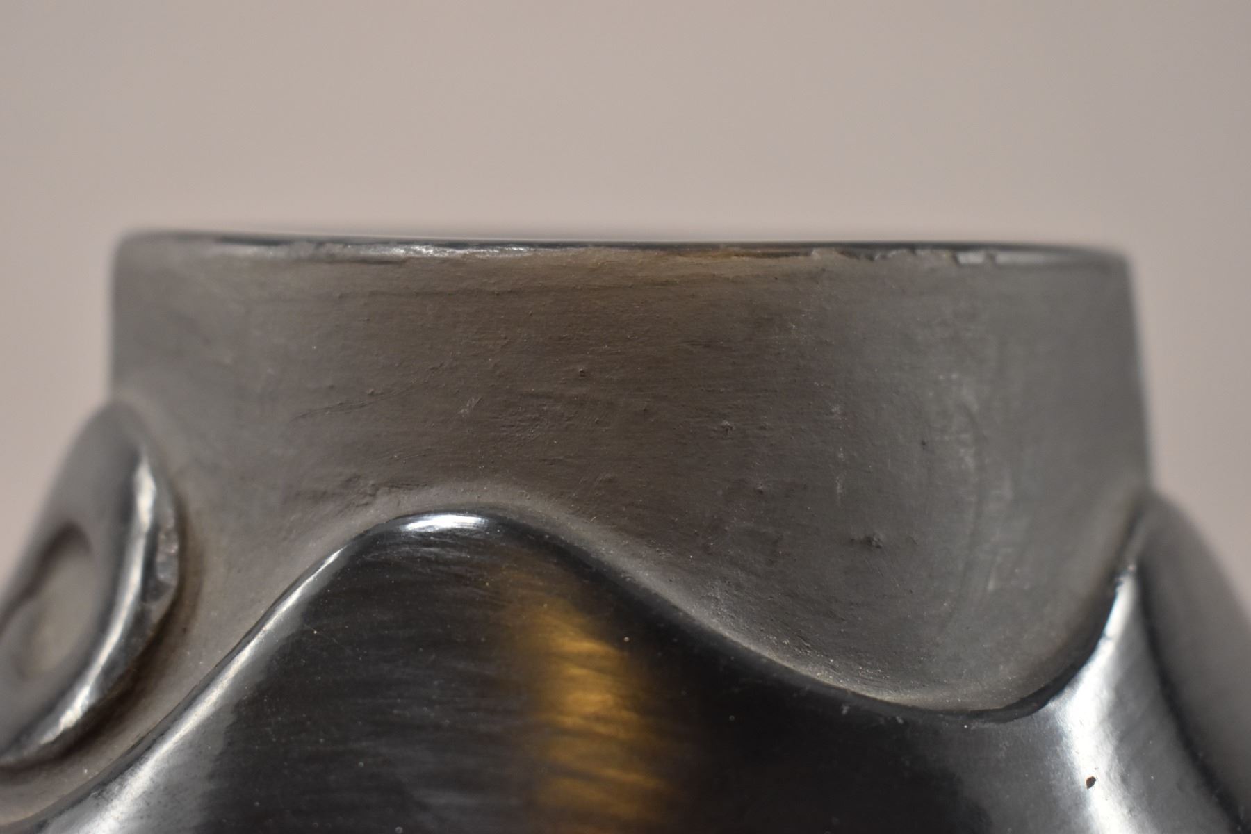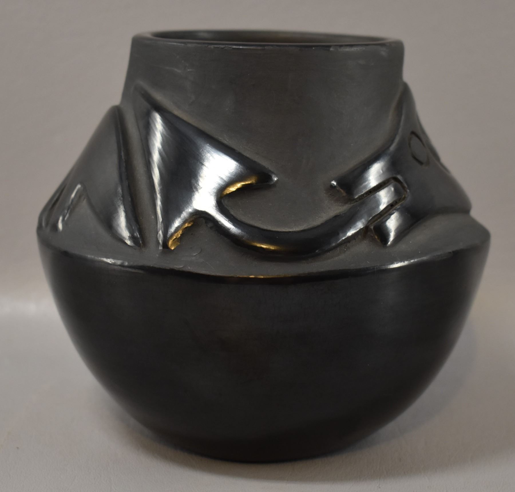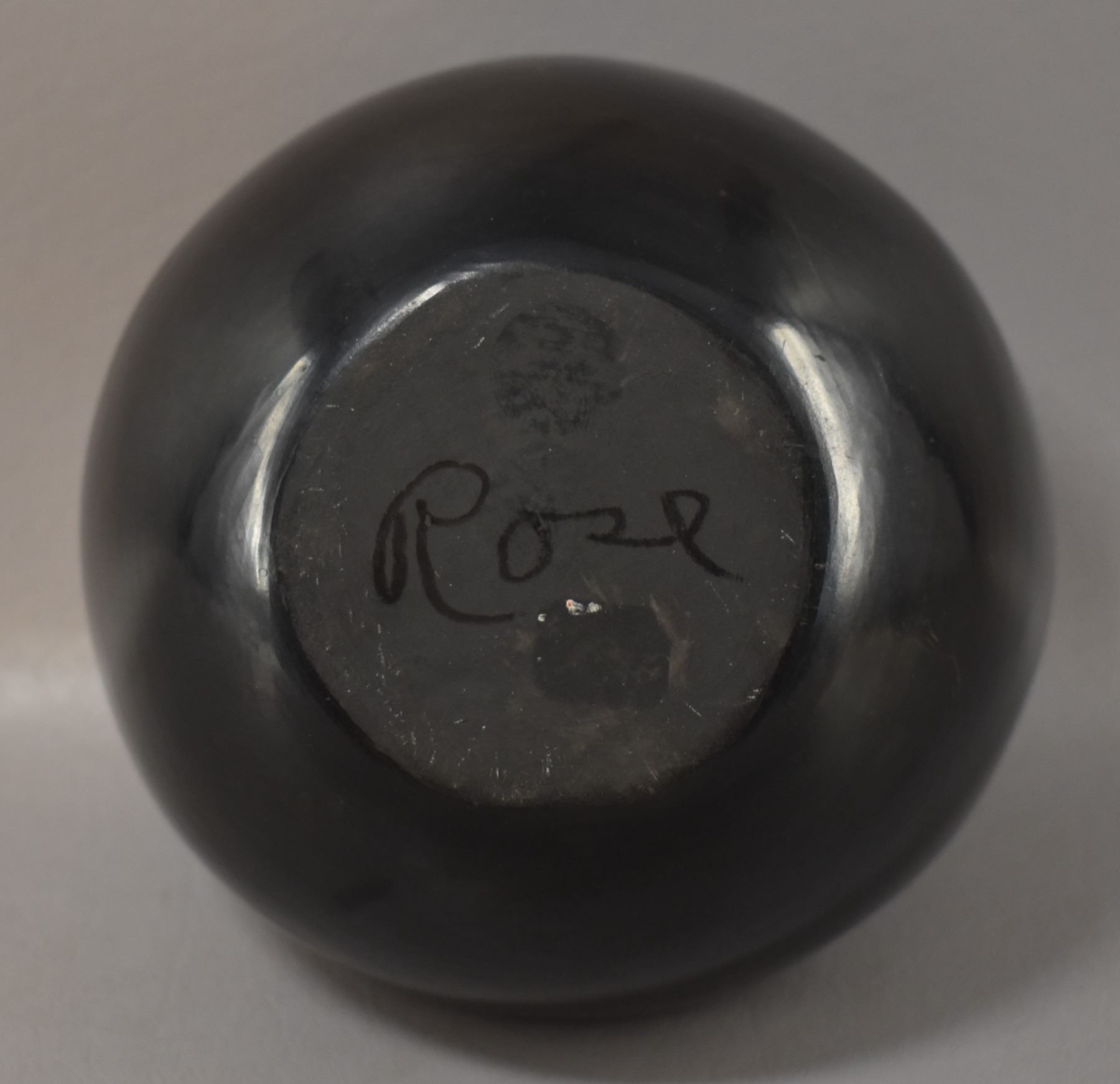 1960's San Ildefonso Indian hand coiled and carved avanyue design signed Rose for Rose Gonzales 6.5" x 5.5"