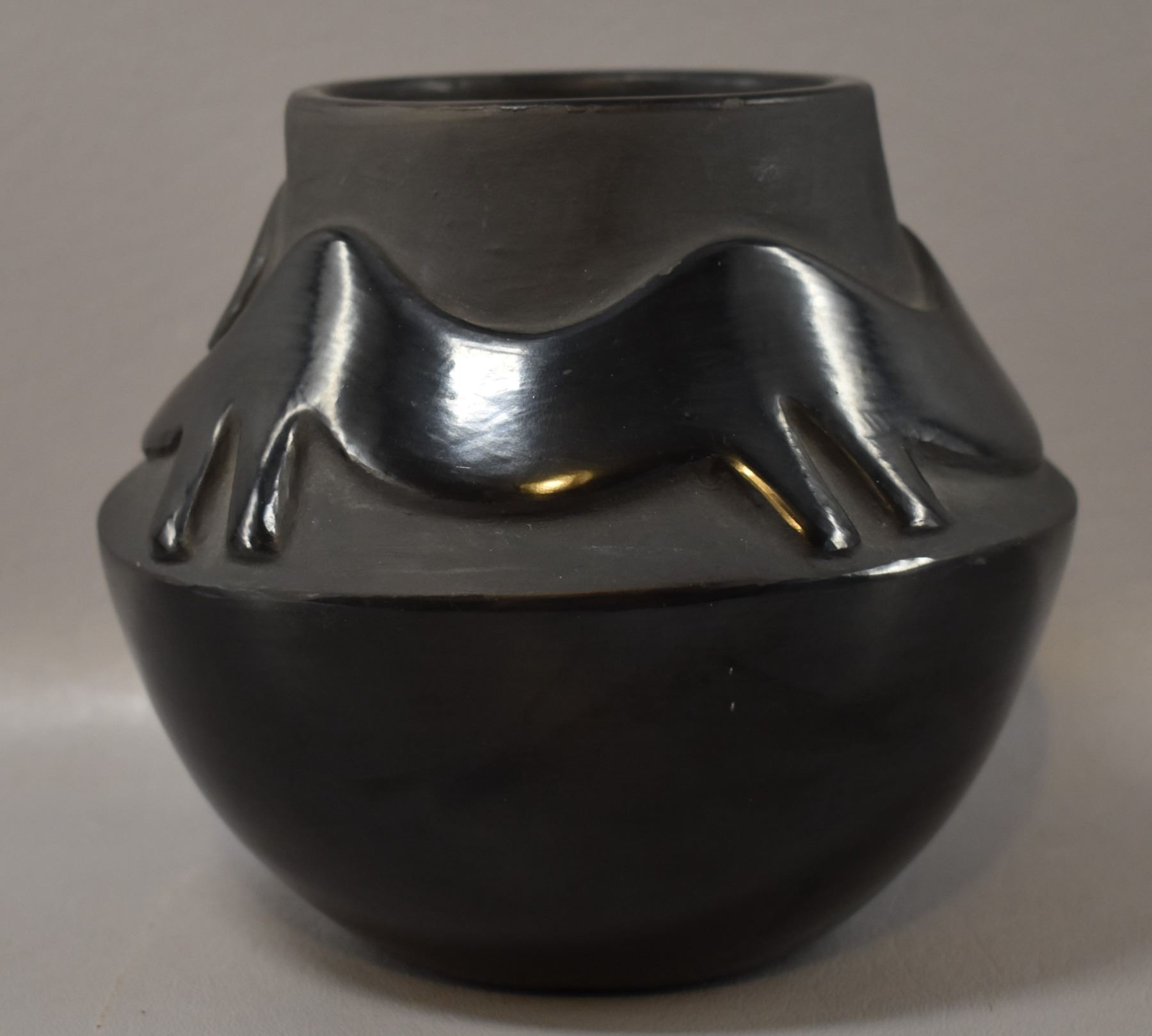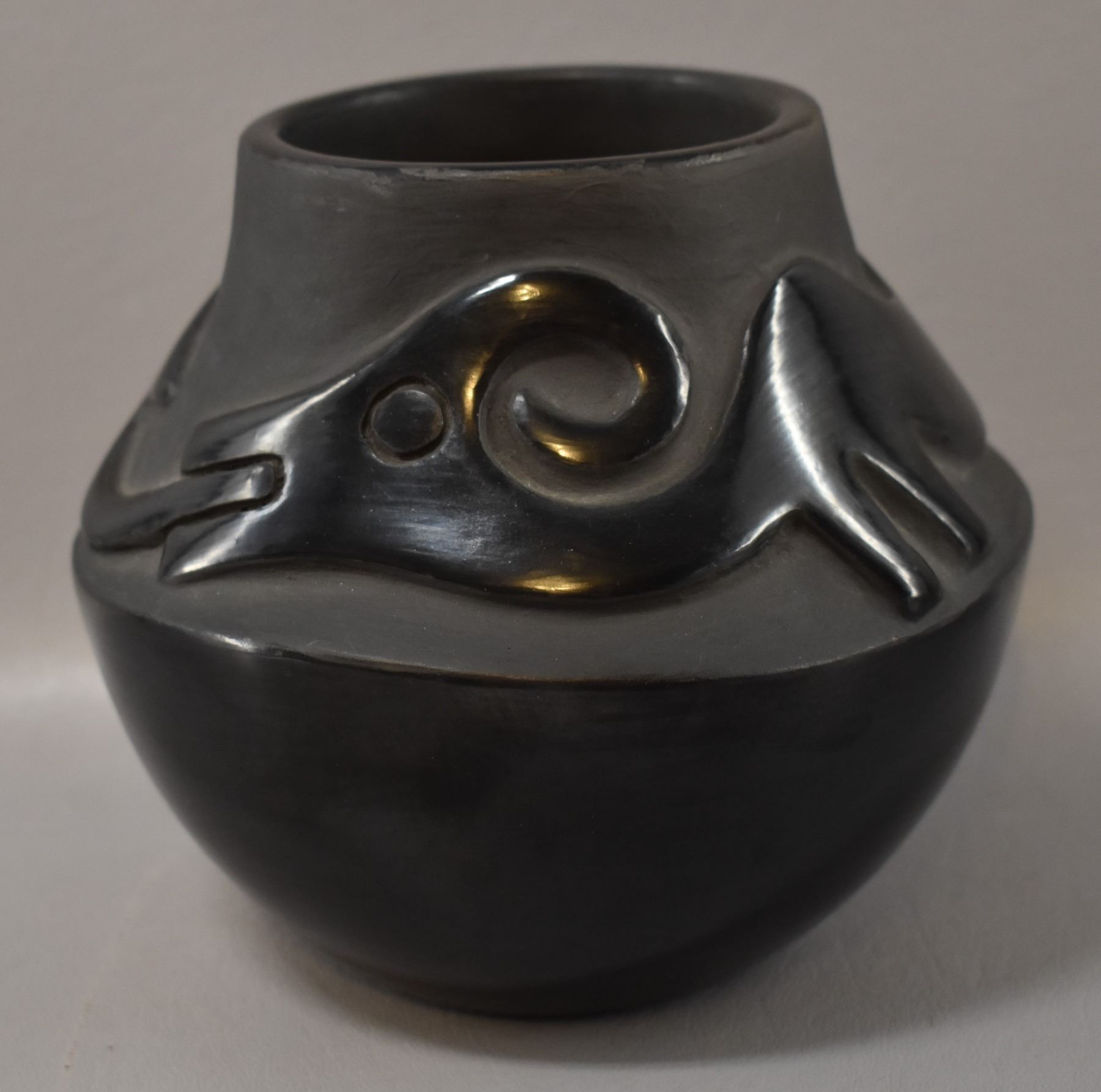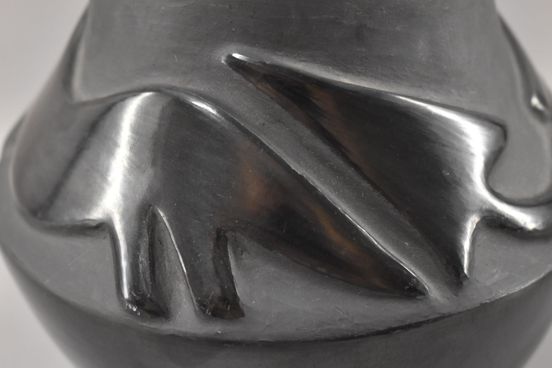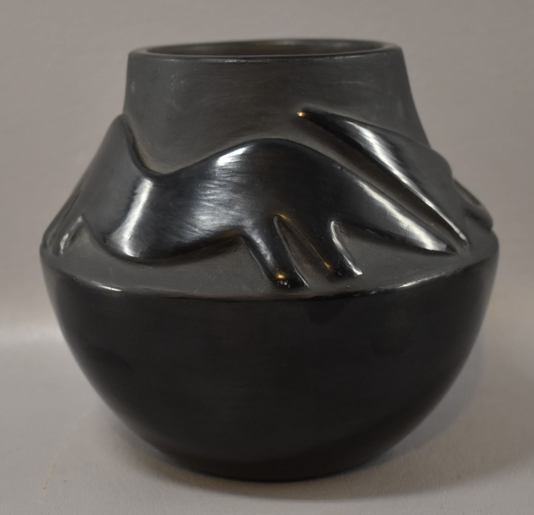 1960's San Ildefonso Indian hand coiled and carved avanyue design signed Rose for Rose Gonzales 6.5" x 5.5"
