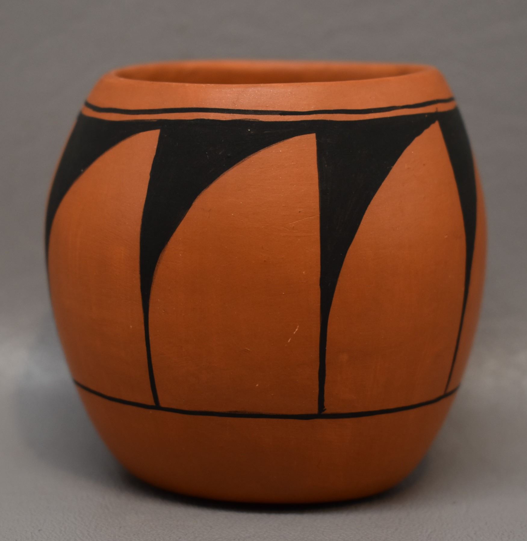 1992 santo Domingo Indian hand coiled and painted feather design signed CG 2.75" x 3"